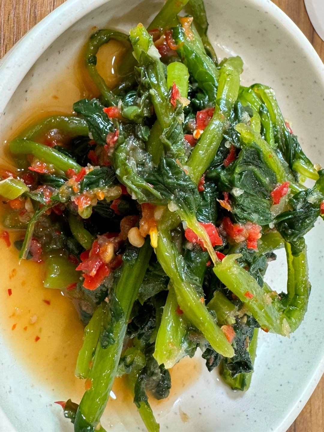 파란 열무의 싱싱한 초록빛과 붉은 고추 조각들이 빚어낸 모양 자체가 하나의 작품처럼 보였다. 열무 한 점을 입안에 넣고 아삭한 식감과 그 무덤덤하면서도 시원한 간이 슬쩍 배이다만 맛을 깊이 음미한다. 잘 익은 열무의 시큼하면서도 시원한 맛과 달리 미세한 시큼함이 입안 침샘을 자극한다. 아밀라아제는 치아가 씹어야 할 일을 덜어주면서 장들이 소화시키는 수고를 덜어주는 최고의 수단이다.