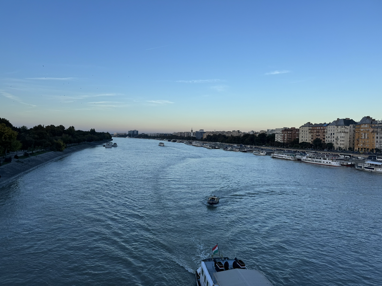 역에서 받은 인상과 달리 아름다운 옅은 저녁노을이 강물빛에 물감처럼 섞여 아득하게 느껴졌다. 다리를 오가는 사람들의 인상에서 역동적인 느낌을 받았다. 부다페스트는 변화무쌍하고 뭔가 새로운 일이 계속 일어날 것 같은 자유분방함이 숨겨져 있을 것이라고 생각했다. 숙소 앞에서 문자를 하니 큰 딸은 숙소 앞 트램역에 마중 나가 있었다. 저기 멀리서 뛰어 오는 모습에 반가운 감정이 올라왔다. 2018년 12월 바르샤바행 비행기로 도착한 다음날 새벽, 교환학생 생활을 하고 있던 리투아니아 빌니우스에서 8시간을 버스를 타고 왔을 때 마주했던 추억이 겹쳐졌기 때문이다. 가까운 곳에서 만나도 반가운데, 며칠 안 봤을 뿐인데도 먼 여행지에서의 조우는 새롭고 반갑다.