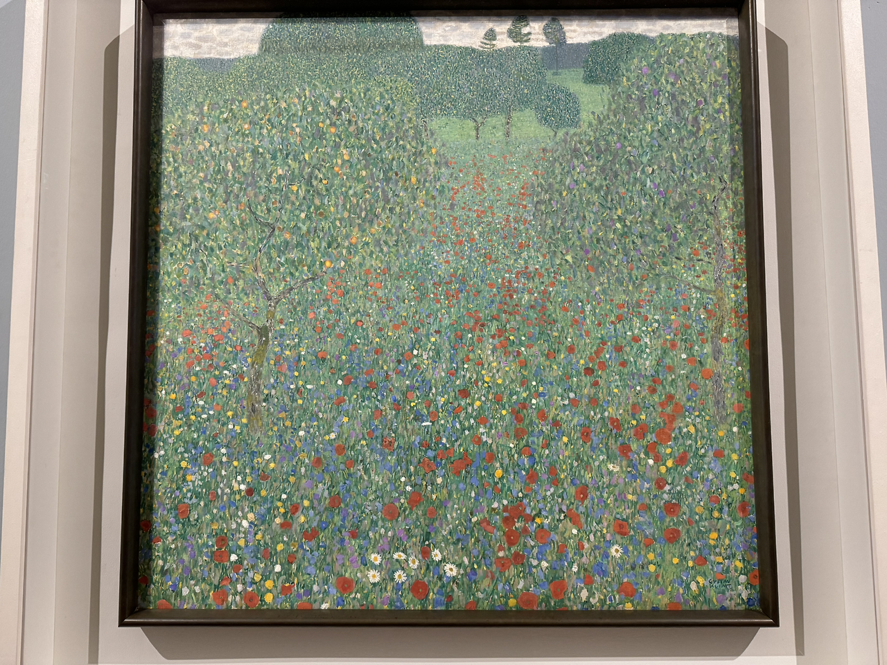 클림트의 <키스>는 워낙 유명해서, 사람들도 많고 잠시의 틈을 셀카를 찍어 도저히 찬찬히 감상할 엄두가 나지 않아 스쳐 지나갔다. 인물화들을 지나쳐 <개양귀비 들판>과 <캄머성 공원의 산책로>와 같은 자연풍경이 담긴 작품들을 보았다. 색감이 너무 화려하고 섬세한 붓터치의 흔적을 살펴본다. 정면에서 옆면에서 약간 위에서 약간 아래에서 각각의 각도에 따라 그 터치의 질감은 조금씩 다르다. 고흐의 작품에서 보였던 원색의 출렁임들이 이어지고 있어서, 한 사람의 그림은 한 사람의 그림에서 끝나는 것이 아니라, 다른 예술가들에게로 동심원처럼 퍼져나가는 흐름이라고 생각했다. 색들의 향연 속으로 잠시 몰입하는 동안 그림 한 점이 사람에게 줄 수 있는 효과가 얼마나 큰 것인가를 생각해 보았다. 수많은 사람들이 1년 365일 오가면서 받을 그 위로와 평안, 끊임없이 사람들 뇌리 속에서 재연되고 또 다른 예술가들에게 영감을 줘서 새로운 작품으로의 길을 열어주는 하나의 문을 만드는 작업이다. 각각의 그림들은 새로운 문이며 그 문을 통해 작가의 생각과 느낌이 전달되고 그 작품들이 또 다른 작가들을 만들어내고 나와 같이 잠시 그림을 보고 지나치는 사람들에게는 작은 위로와 평안을 줄 수 있으니....