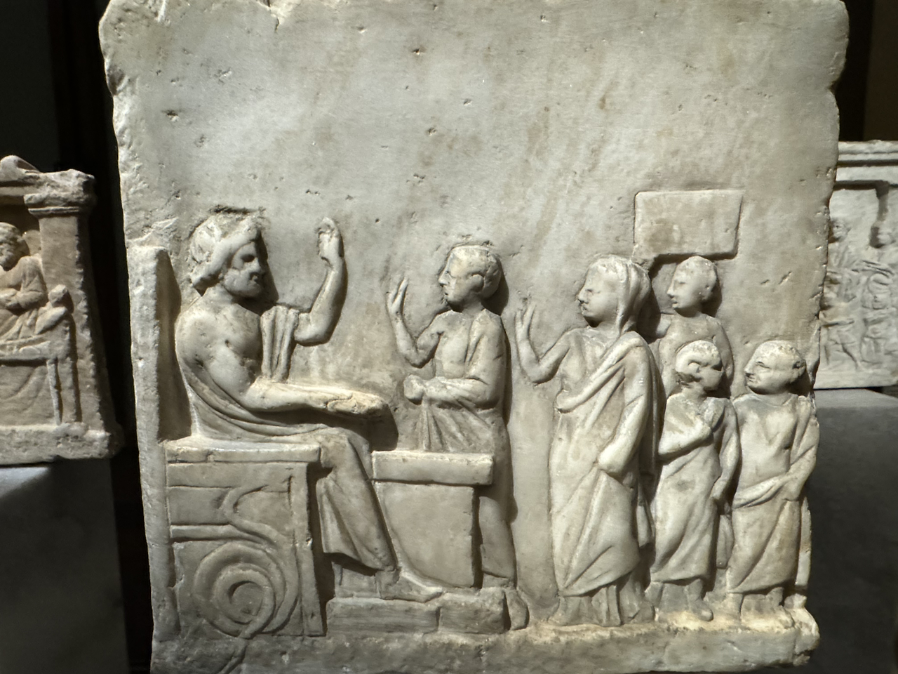 이런 파편적인 기억의 조각들이 작품들을 보는 순간 짜깁기하듯이 하나씩 들어온다. 이 조각상들은 자세나 표정들이 심각하다. 눈앞이 아닌 어디 다른 차원의 뭔가를 응시하는듯한 표정들.... 이집트관과는 달리 좀 더 섬세하고 사람의 모습과 표정을 구체적으로 묘사하고 있는 대목들이 눈에 들어온다. 소크라테스와 플라톤, 아리스토텔레스의 조각상들은 각기 다른 표정을 하고 있었다. 그 이미지들이 생각나듯 이 조각상들은 뭔가 깊은 사고를 하고 뚫어지게 무언가를 관찰하는 듯한 모습을 살펴보게 된다.