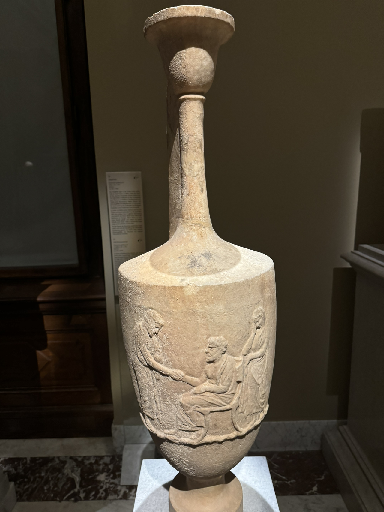원형의 접시들과 문양이 가장 눈길을 끌었다. 다른 박물관에서 보기 힘든 그리스와 로마의 도자기들은 뭔가 이색적이면서도 오랜 세월을 거쳤음에도 원형이 잘 보존되어 있어서 그 완성된 형태를 바라보는 재미가 있었다. 작품마다 각기 다른 이야기들이 스며들어 있어서 하나하나의 작품을 새겨서 본다는 것은 애초에 불가능한 일이었다. 시간은 한정되어 있고 다리도 서서히 아프기 시작한다. 최선의 방법은 스마트폰에 담아 일상 속에서 생각날 때마다 꺼내 다시 감상하는 수밖에 없으리라.