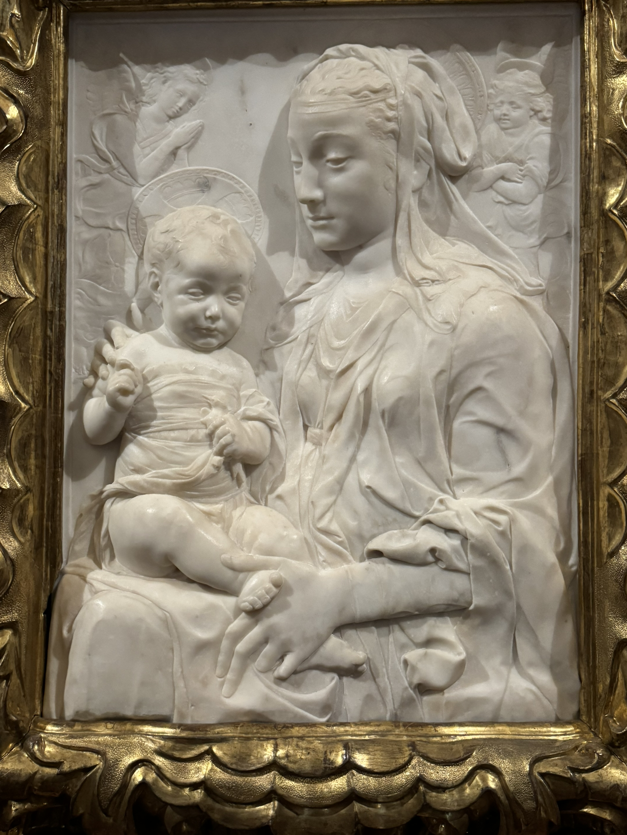 발길을 돌리기 아쉬워하던 차에 눈에 들어온 작품인 성모마리아와 아기 예수. 대리석을 깎고 다듬어서 만들었을 터인데 천의 질감도 놀랍지만, 그것보다 평범하고 일상적으로 가까운 거리에서 만날 수 있는 사람에 가까운 표정이 더 정겹게 느껴진다. 이 주제가 가진 범위에 비해 많은 작품들을 만나보지는 못했지만, 그 평범한 일상성의 경계에 가닿았다고 느끼기에 훌륭한 작품이라고 생각했다.
