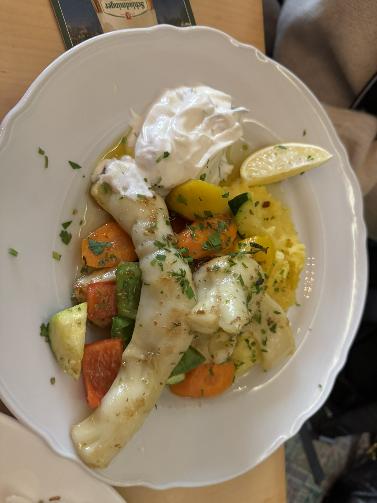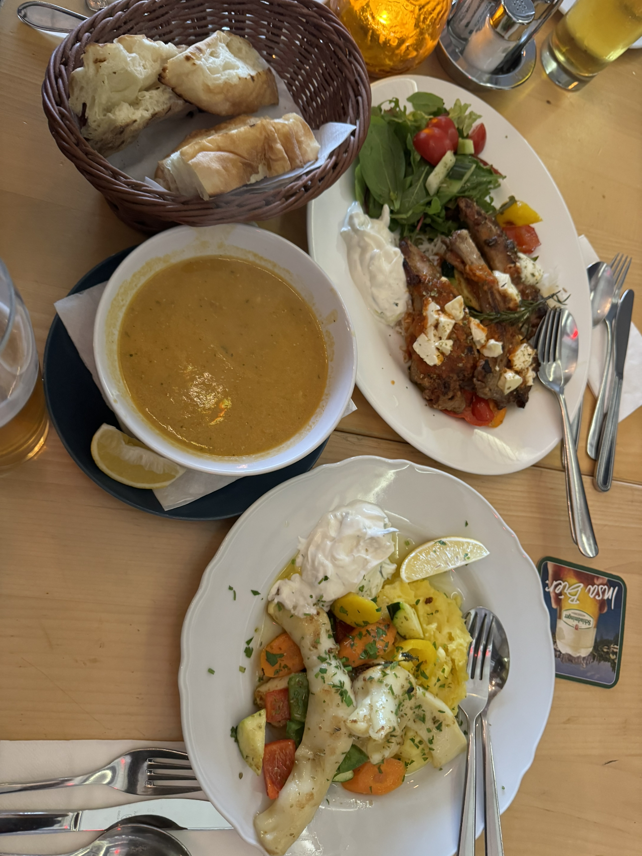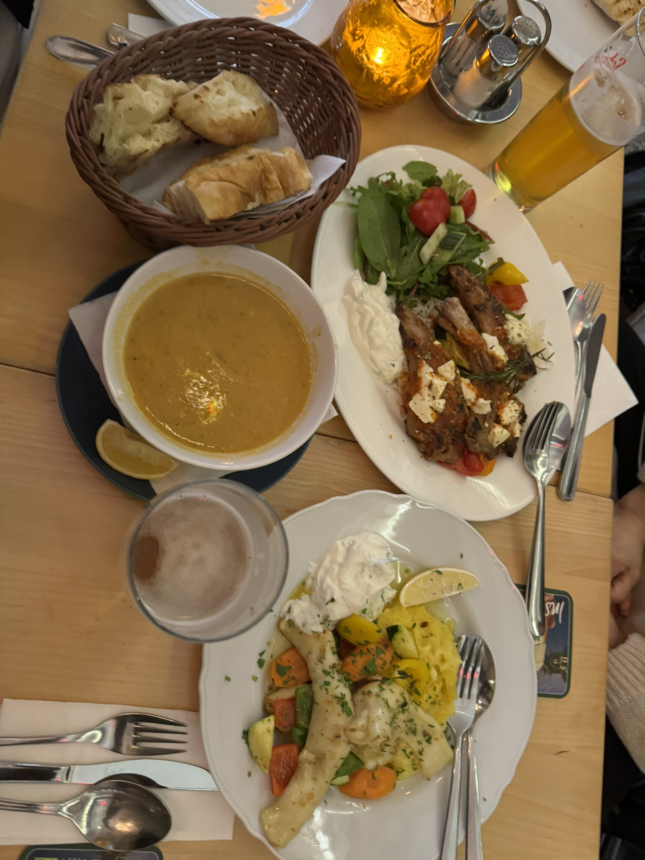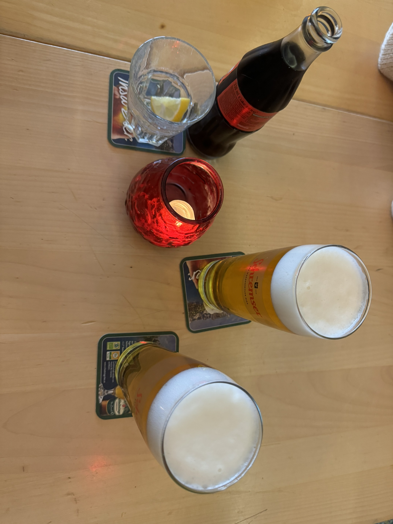 Schremser 맥주는 오스트리아 북부의 발트피어텔(Waldviertel) 지역에 위치한 슈렘스(Schrems) 마을은 체코와의 국경과 인접해 있다. Schremser 양조장은 1410년경부터 맥주를 양조해 온 것으로 문헌에 기록되어 있어, 오스트리아에서 가장 오래된 양조장 중 하나로 알려져 있다. 지역의 청정한 자연환경과 전통적인 양조 방식을 결합하여 독특한 풍미를 자랑하는데, 특히, 유기농 재료를 사용한 다양한 종류의 맥주를 생산한다고 한다. , 메뉴판의 ‘Schremser Bio‘ 궁금하다는 핑계로 라거를 얼른 한 잔 비우고 주문했다. 유기농 보리와 홉을 사용하여 양조되며, 필터링 과정을 거치지 않아 자연 그대로의 풍미를 제공한다고…. 탄산감에 실려오는 독특한 맛은 어느 장르에도 속하지 않는 새로운 맛이다. 옅은 에일과 옅은 밀맥주 사이 경계 어딘가에 있을 거 같은데, 맛이 묘하다.