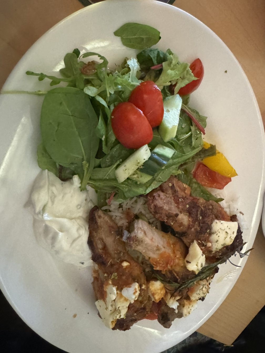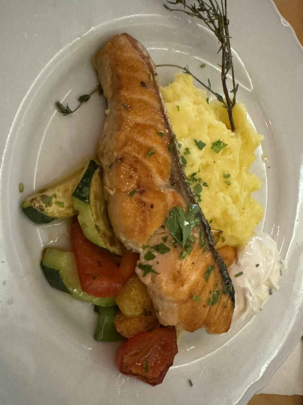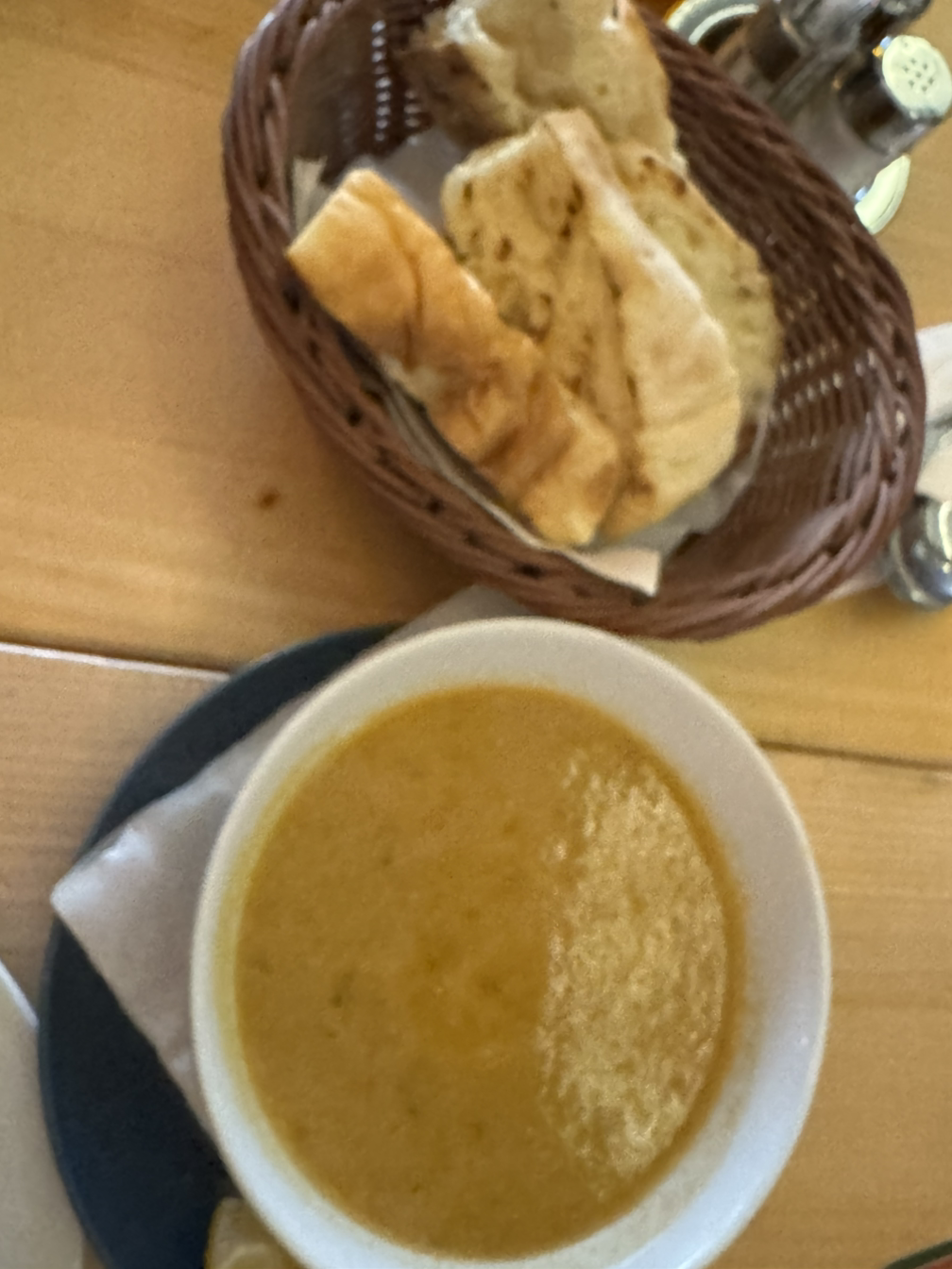 짠 득한 식전빵과 고소한 수프가 잘 어울린다. 뭐 이것 만으로도 완벽하다. 레몬을 뿌려 먹는 것이 이제는 습관으로 자리 잡혔다. 시큼하면서도 상큼한 맛이 음식에 더해져 씹기 전부터 먹는 동안 내내 입안의 침샘을 자극한다. 침샘의 자극은 소화와 연결된다. 부드러우면서도 씹는 맛이 독특한 오징어는 유난히 입안에 착 감겼다. 피망과 당근을 먹고 나면 이들이 대장에서 분해되어 몸속에서 좋은 역할을 한다. 단쇄사슬지방산의 효과를 배운 것과 그 음식을 먹는 것은 서로 연결된다. 플라세보 효과를 제대로 느낀다. 잡내 없는 양고기를 먹고 나니 이 식당의 내공을 제대로 파악한다. 그 음식솜씨와 가성비를 생각하니 왠지 하나 더 주문해도 될 듯… 연어를 주문했는데, 이번에도 기대이상이다. 또 한 번의 성공을 해낸 자만이 누릴 수 있는 여유로움과 느긋한 오후의 식사 속에 노곤해지며, 세상을 다 가진듯하다.