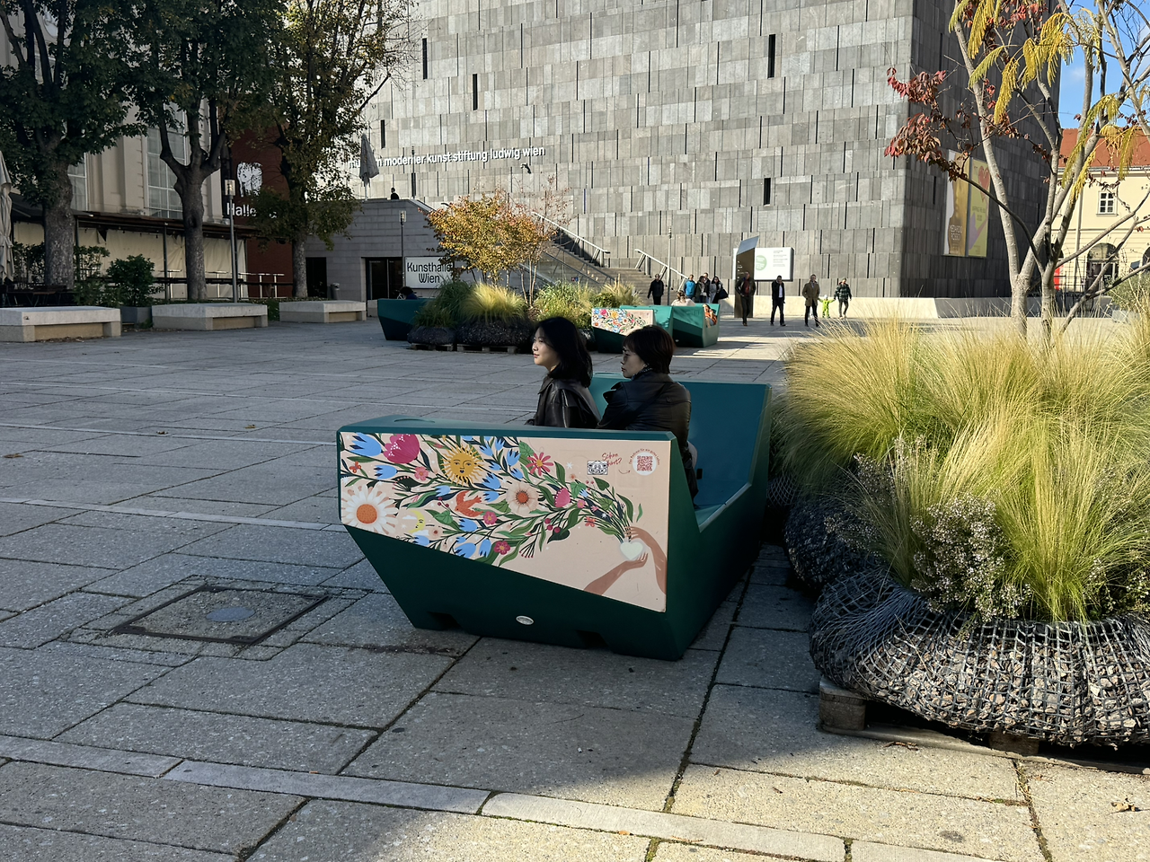 아침식사를 가볍게 스쳐 지나간 뒤, 꽤 오랫동안 미술관에서 머물렀다. 서서히 시장기가 밀려온다. 레오폴트미술관, 훈데르트바서 박물관, 현대 미술관 등이 밀집한 광장에 이르러 편하게 쉴 수 있는 세련된 디자인의 쉴 곳에 앉는다. 잠시 시간은 정지되어 있고 어느새 슬쩍 하늘을 보고 눕는다. 시리도록 밝은 햇살이 저만치에서 바로 코앞에 와서 비타민 D합성의 즐거움을 만끽하길 권한다. 여행 떠나는 자가 누릴 수 있는 기쁨이 길 위에 있다. 잠시 앉아 쉬면서 검색을 했는데, 지중해 음식을 파는 곳이 눈에 들어온다. 생각보다 거리가 제법 된다. 광장을 지나 현대미술관을 끼고 두 번 언덕을 올라가니 커브길로 트램들이 오간다. 바로 그 거리 끝자리에 위치한 식당으로 들어간다. 적당한 감상, 적당히 가벼운 속, 적당히 걸어서 힘들기 전에 멈춘 그 타이밍이 완벽하다. 이제 식사만 완벽하면 된다.