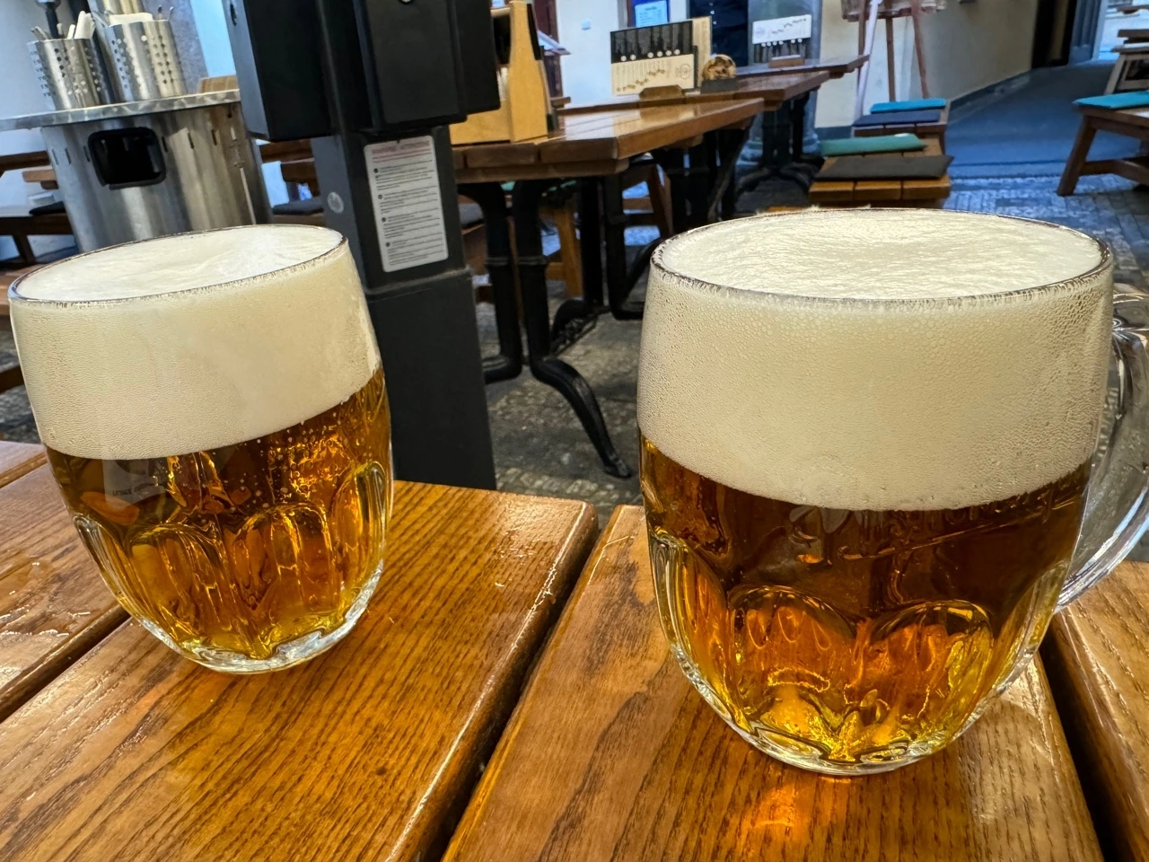 한국에서는 대부분 거품이 별로 없는 맥주를 선호하지만, 이곳은 맥주의 본고장답게 거품이 거의 35% 지점에 도달해 있다. 비엔나에서도 약간 느꼈지만, 이곳에서는 확연히 적당히 많은 거품을 실어온다. 입에 닿는 거품과 거품을 헤치고 입안으로 밀려들어오는 진한 라거의 향과 맛이 일품이다.
