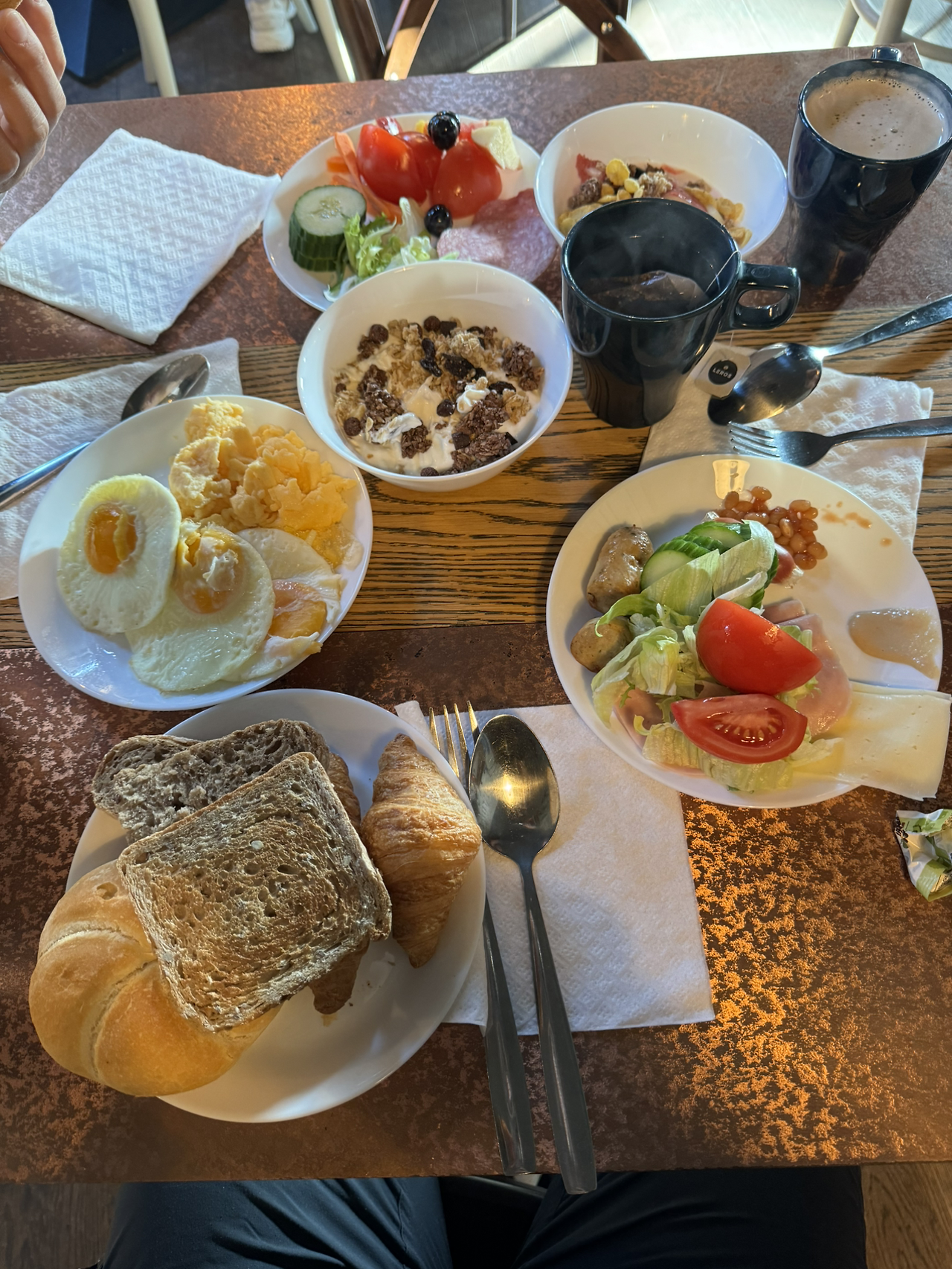 조식을 먹고 점심을 건너뛰울 요량이지만 과식은 발걸음을 지치게 만들 수 있다. 오래간만에 빵냄새를 맡으니, 손이 계속 간다. 버터만 발라도 빵의 맛을 제대로 느낄 수 있다. 평소 안 먹던 빵을 바게트, 크루아상, 검은 빵, 단 빵 등 여러 종류를 버터에 발라 치즈, 햄 등과 싸서 먹었다. 안 먹던 빵을 많이 먹어 늦은 오후 결국 장에 약간에 탈이 나고 말았다. 지나치게 많이 음식을 탐하는 유혹은 정말 어쩔 수 없는 일이다.