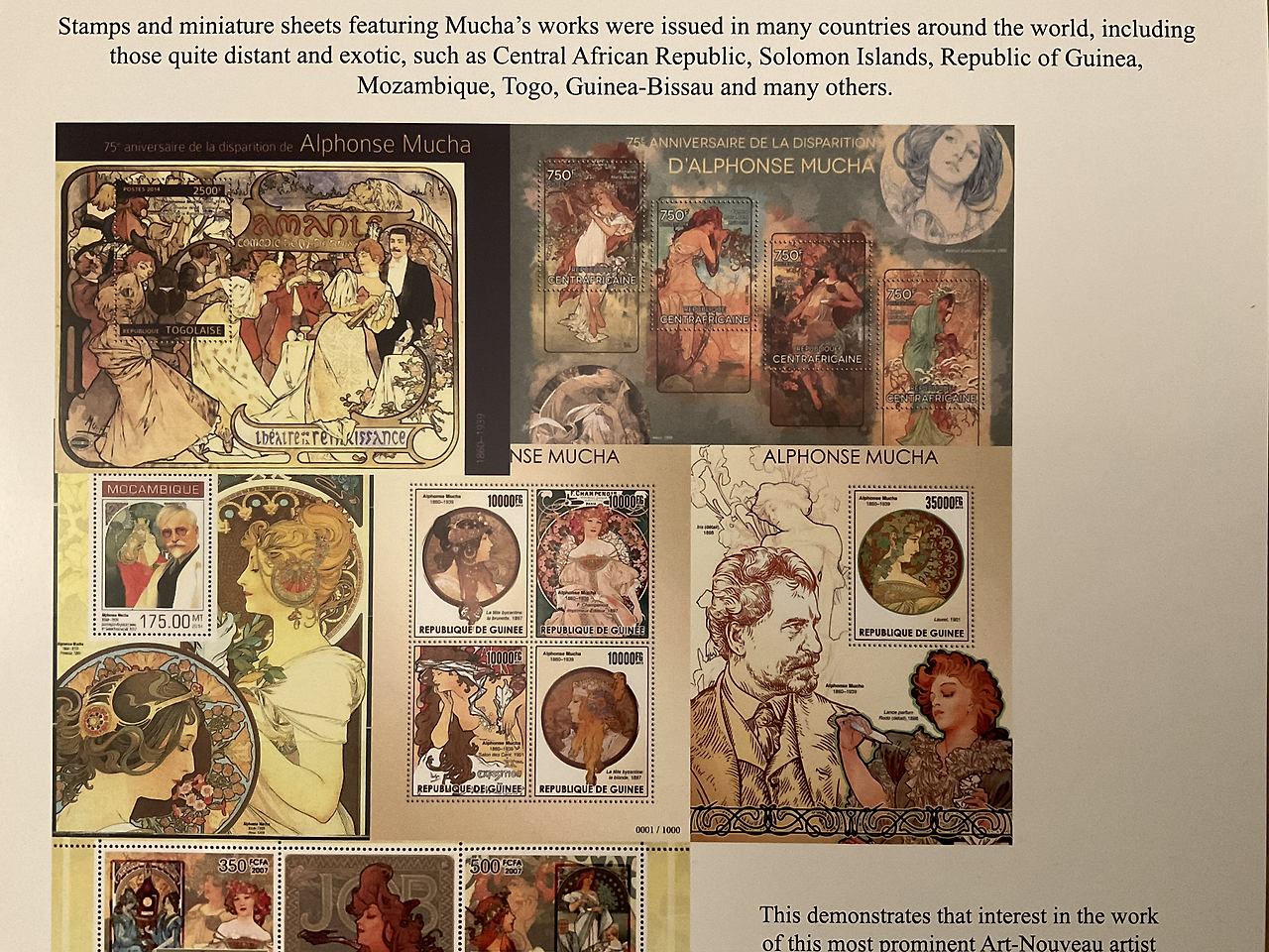 무하는 이 외에도 체코슬로바키아의 독립을 상징하는 체코슬로바키아 국장의 디자인, 동전, 우표 등을 제작하며 체코 국민들에게 자부심을 심어주기 위해 노력했다. 그는 단순한 장식 예술가가 아니라, 민족적 자각과 정치적 해방을 예술로 표현한 사회적 예술가로 거듭났다. 1939년, 나치 독일이 체코슬로바키아를 점령하면서 무하의 삶은 극적으로 변화했다. 무하는 체코슬로바키아에서 민족적 상징으로 여겨졌기 때문에, 나치에 의해 게슈타포에 소환되어 심문을 받았다. 이미 고령이었던 무하는 심문 후 건강이 악화되었고, 그로 인해 그는 1939년 7월 14일에 사망했습니다.