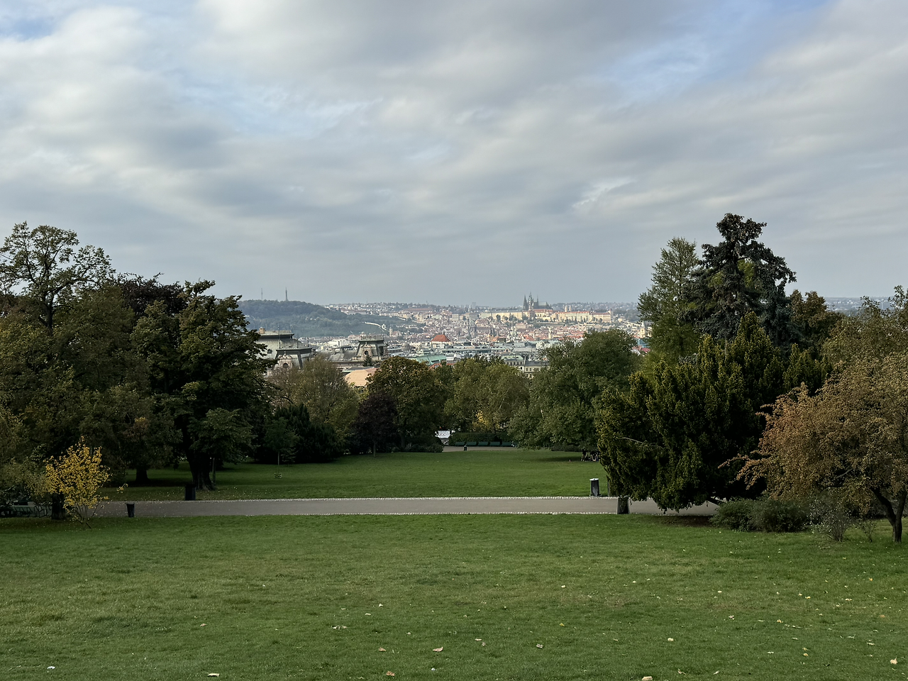 박물관을 나와 그 뒤쪽으로 향한다. 큰 공원이 있는 방향으로 갔다. 그동안 봤던 구시가지는 주로 관광객들이 몰리고 시민들의 일상을 잘 볼 수 없었다. 일상적 삶이 펼쳐진 골목들을 지나, 공원으로 진입한다. 공원은 아담하고 나무들이 울창해서 가을의 풍경을 만끽할 수 있었다. 언덕에 올라서니 저기 구시가지 프라하성을 비롯해서 모든 풍경이 한눈에 들어온다. 웹으로 검색을 해 보니 여기가 노을이 질 때의 풍경이 가장 아름다운 곳으로 사람들이 많이 왔다고 한다. 한 번에 모든 풍경을 조망할 수 있는 곳, 이 아름다운 풍경을 사진에 담는다고 담아질 수 있을까?