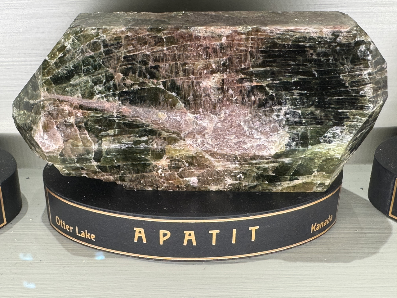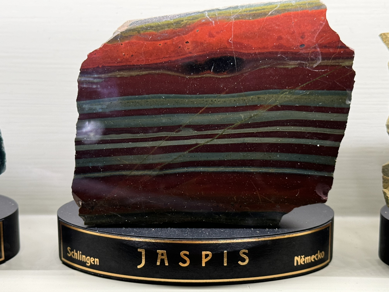 마노(Achat, Agate)는 줄무늬를 가진 석영 변종이다. 반투명 광물로 화산암 내부에서 형성된 후, 실리카가 오랜 기간 침전하면서 생성되었다. 체코, 독일, 브라질 등이 주요 산지이다. 아파타이트(Apatit, Apatite)는 인산염 광물로 형광성이 있으며, 화강암과 변성암에서 발견되었다. 브라질, 캐나다, 체코 등이 주요 산지이며, 치아의 주요 성분과 비슷하다.