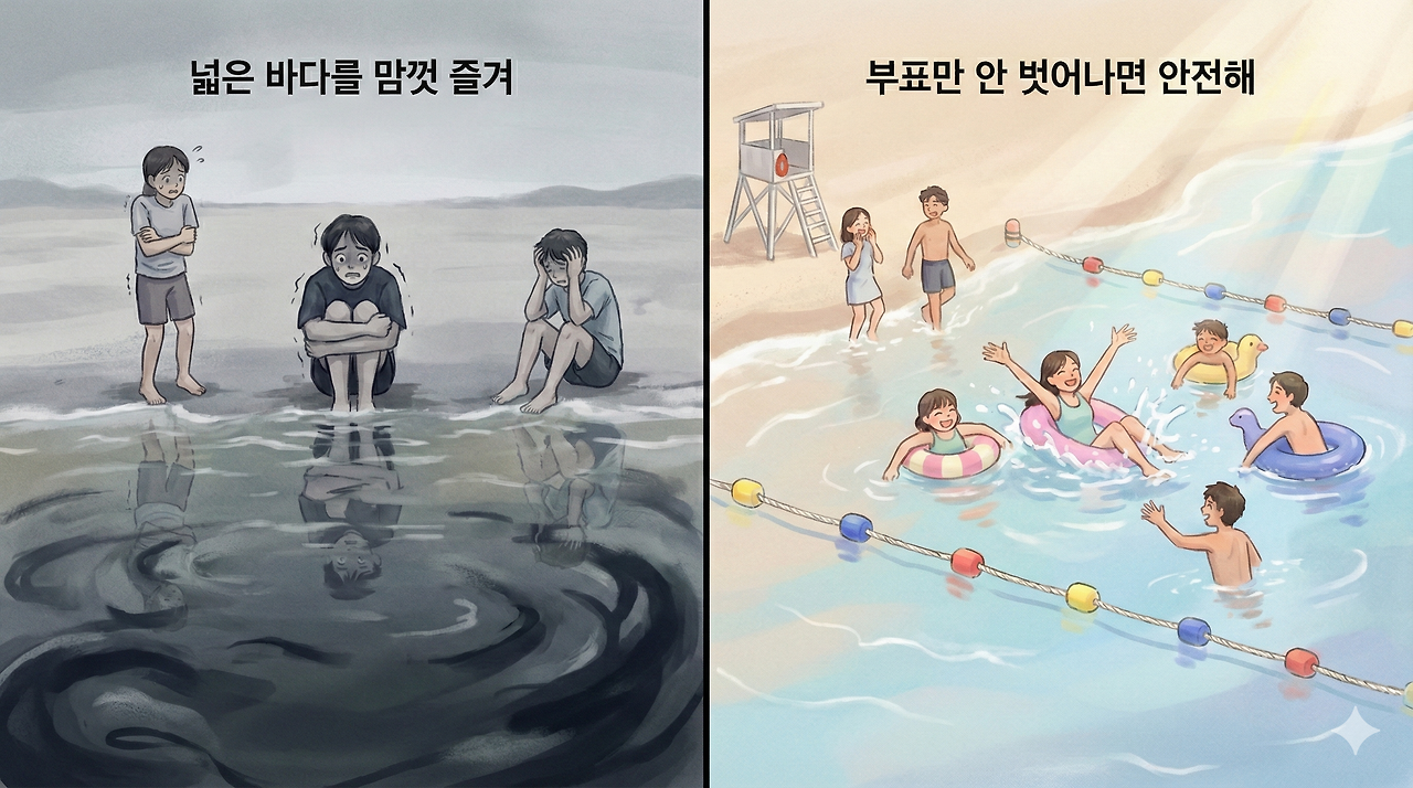 반면 '최소 80% 참석률', '예산 이내'라는 구체적 통제선은 역설적이게도 안정감을 준다. 팀 운영에서도 허용 가능한 경계를 명확히 합의하면 그 안에서 진정한 자유가 가능해진다.