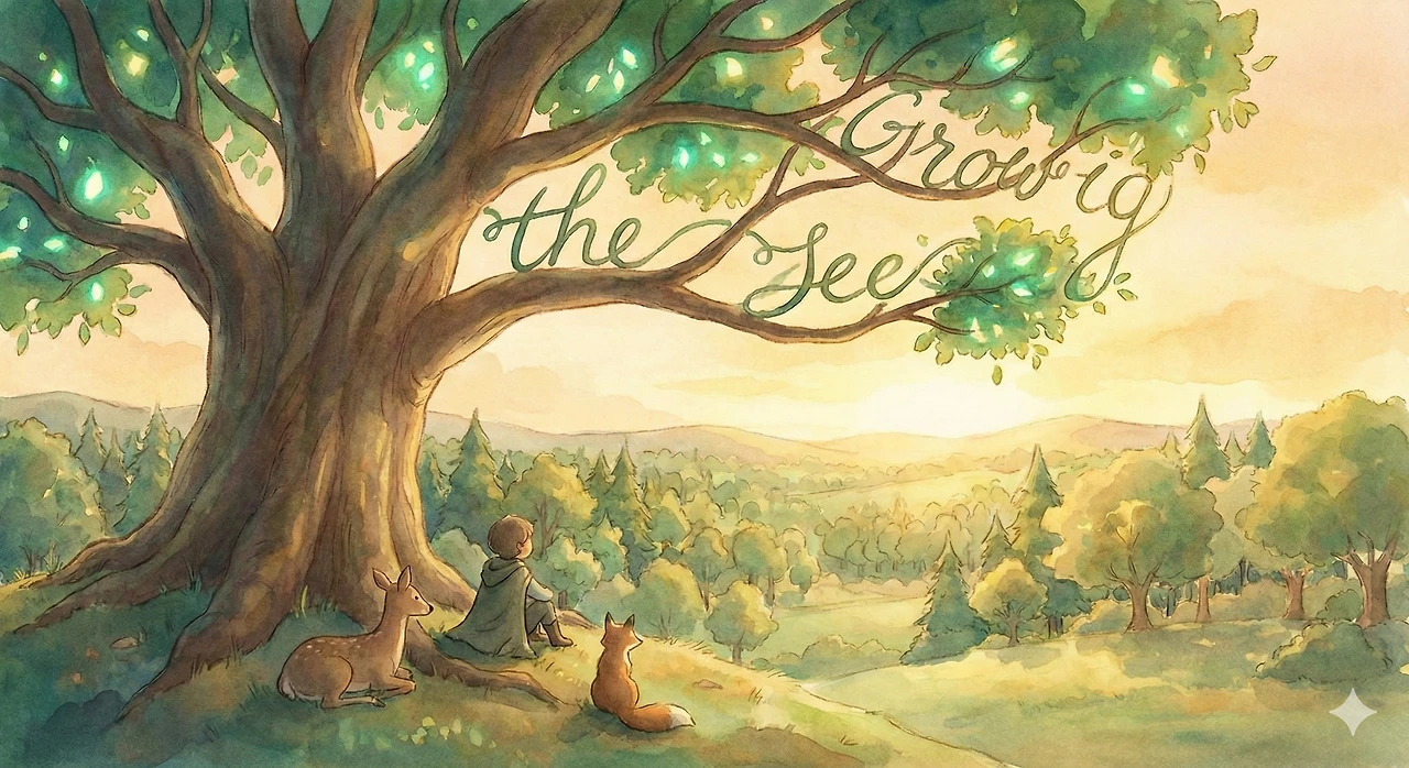 신은 나무를 통해 빛나는 초록색으로 자신의 고요한 생각을 세상에 쓴다.