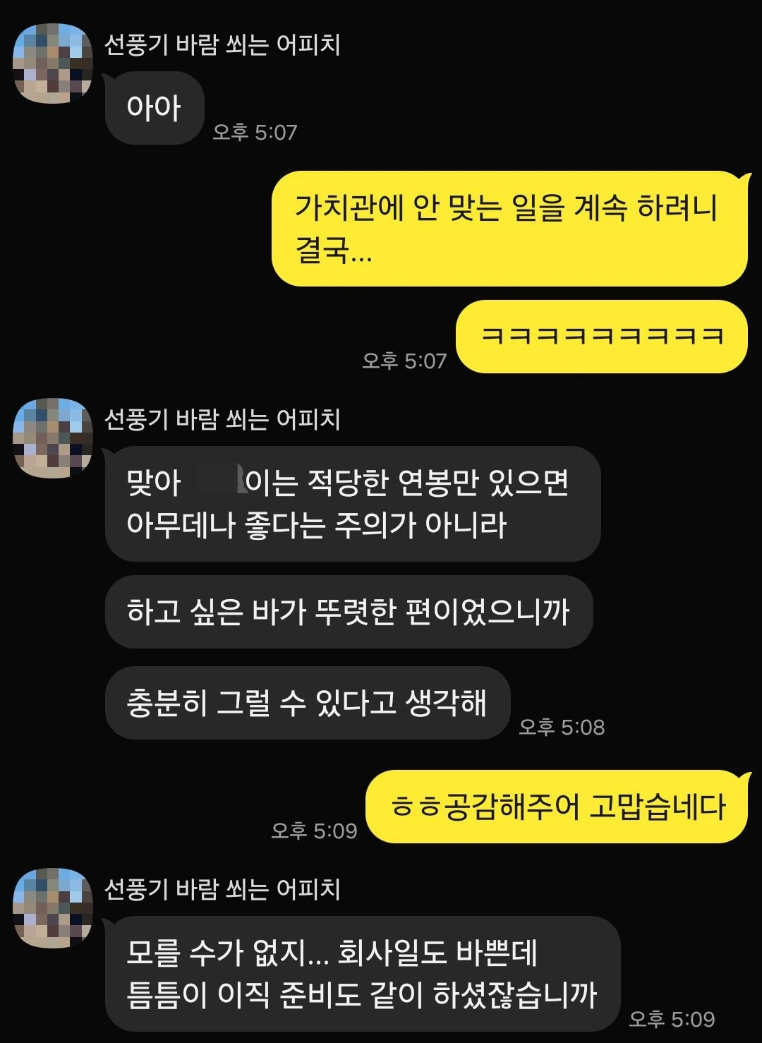 선배는 대화를 마무리하며 장난스럽게 말했다.