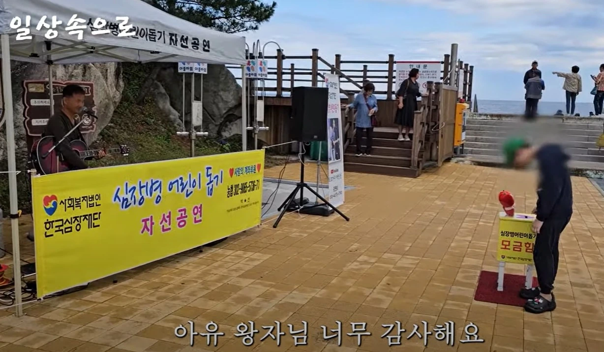 버스킹으로 얻는 수입은 고작 하루에 3,4만 원~10만 원 정도라 했다. 먹고 살기에도 빠듯해 보이는데 그는 꾸준히 심장병을 앓고 있는 어린이들을 위해 기부를 하고 있단다. 본인의 삶도 넉넉하지 않지만 자신보다 더 힘든 이웃을 위해 가진 것을 기꺼이 내어놓는 모습에 많은 생각이 들었다.
