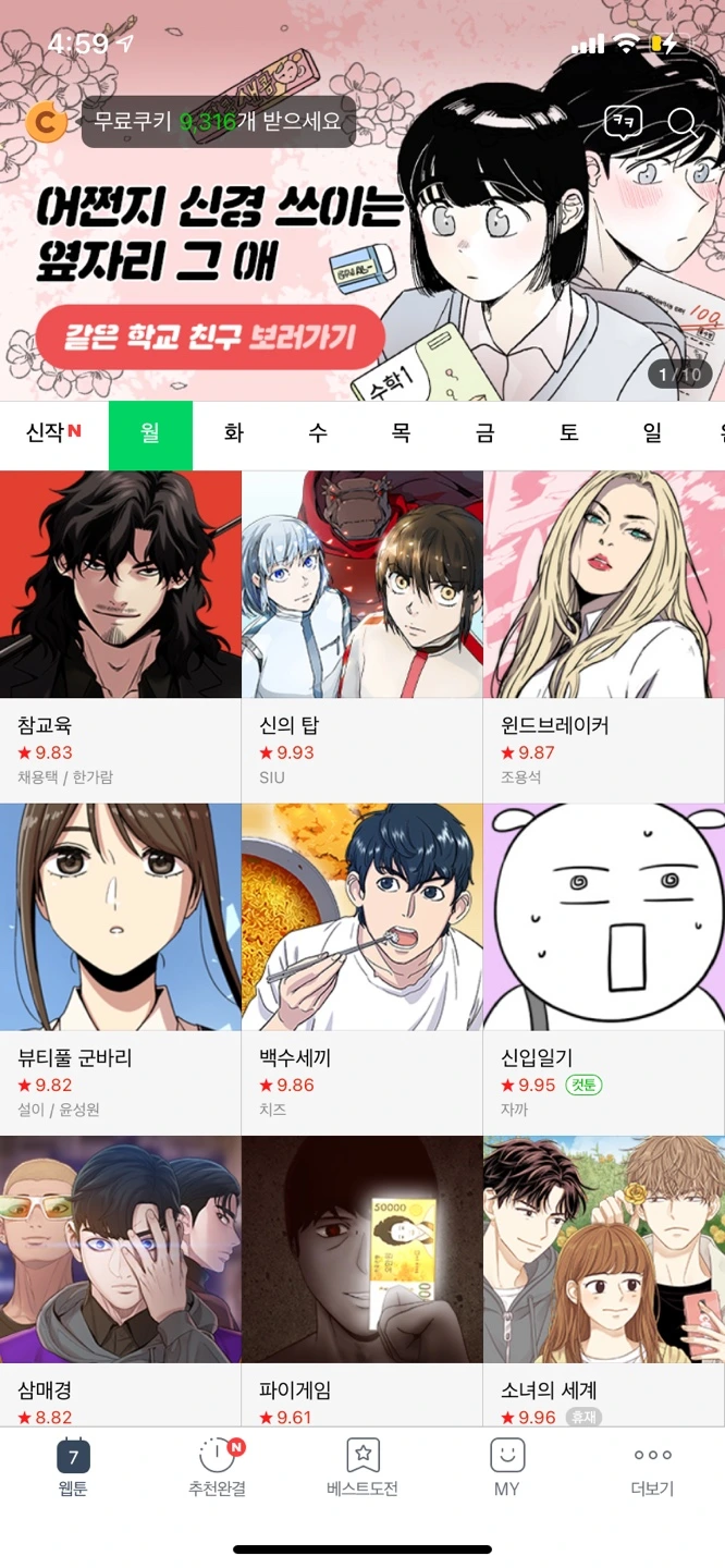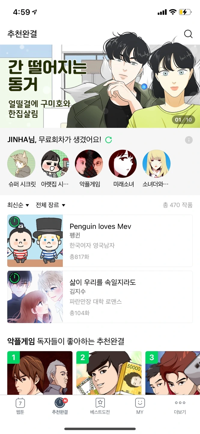 네이버 만화에서 제공하는 서비스와 콘텐츠를 모바일 버전으로 제공하고 있습니다.