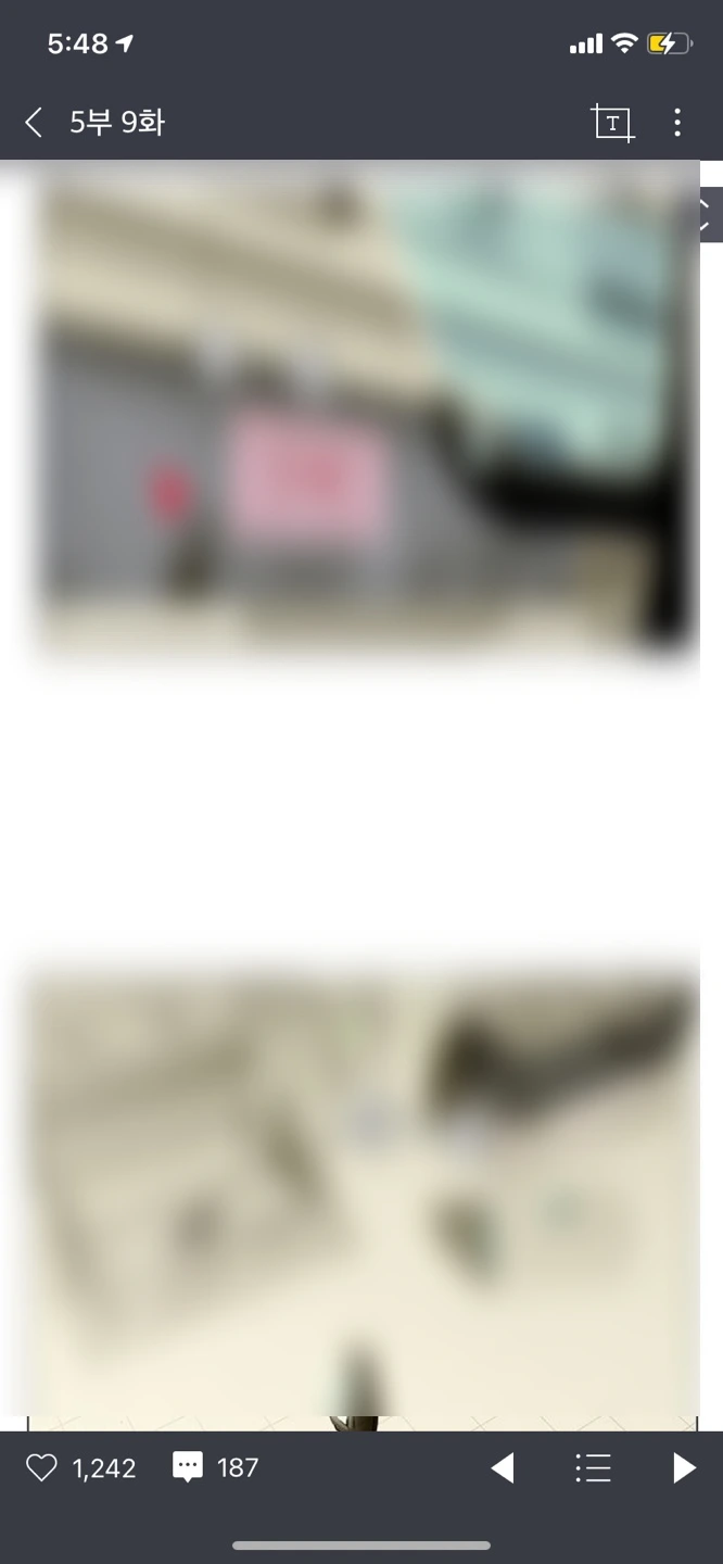 웹툰 감상 화면을 보면 익숙한 UI를 확인할 수 있습니다. 위아래 감싸 져 있는 바 위에 인터페이스가 놓여있어요. 화살표를 통해 이전화, 다음 화로 이동할 수 있고, 하트 모양 버튼을 통해 작품을 '찜' 할 수도 있습니다. 쇼핑몰 상세페이지에서 자주 보던 UI 방식인데, 보통 이경우 내용을 보기 위해 스크롤을 시작하면 상하단의 UI가 사라지면서 오롯이 내용에 집중할 수 있는 환경을 제공하고 있죠. 스크롤을 끝까지 내리거나 역방향 스크롤을 통해 다시 UI를 노출시킬 수 있습니다. 이런 비슷 한 UI를 웹툰 감상 화면에도 적용해서 사용자는 이전에 경험했던 방식을 떠올리고 동작하게 될 거예요.