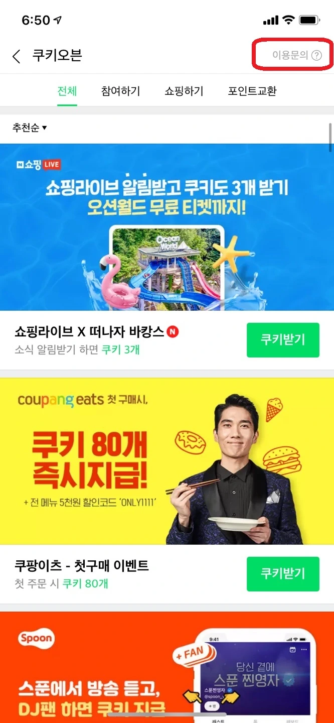 포스텔의 법칙은 UX를 설계할 때에, 사용자의 입장에서 생각하고 있는가에 대한 내용입니다. 제품에 대해서 모든 것을 알고 있는 제품팀이나 개발자 입장에서는 당연한 것이더라도 사용자에게는 당연하지 않은 부분일 수 있을 겁니다. 이럴 때 사용자가 어떤 행동을 하게 되고 어떤 경험을 가지게 될지 생각하고 너그럽게 받아들여야 합니다. 네이버 웹툰에서는 곳곳에 간결한 안내 문구를 통해 사용자 입장에서 의문이 생길 수 있는 부분들을 미연에 방지합니다. 그리고 의문이 생겼을 때에 어떻게 하면 물어볼 수 있는지도 안내하고 있죠. 예를 들어 네이버 웹툰이 가진 쿠키 오븐이라는 시스템은 이름만 들어선 어떤 내용인지 알 수가 없기 때문에 해당 부분에 대해서는 문의하기 버튼이 화면 상단에 위치하고 있습니다.