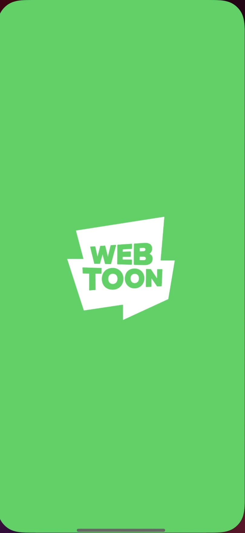 이렇게 메인화면이 각 작품들의 썸네일로 화려하지만, 각 페이지의 UI는 굉장히 깔끔한 편입니다. 또 가장 처음 마주하는 스플래시 이미지에서 아주 심플하고 깔끔한 디자인의 네이버 웹툰의 로고를 보여줍니다. 그리고 모든 GUI의 색은 화이트&블랙을 제외하고 메인 컬러인 녹색으로 통일하였습니다.