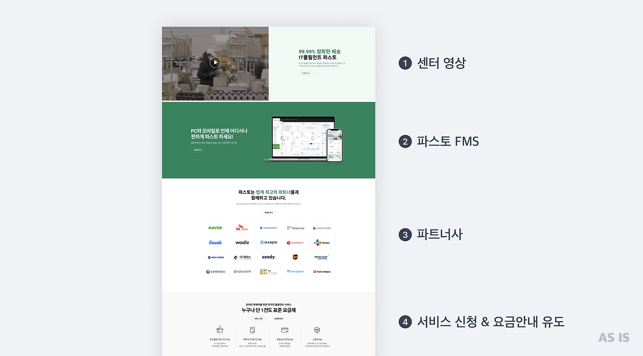 파스토 FMS(Fulfillment Management System)는 PC와 모바일 환경을 제공한다. 시공간 제약 없이 물류현황을 볼 수 있다는 점이 큰 메리트이기 때문에 이 부분도 기존보다 더욱 강조하기로 했다.
