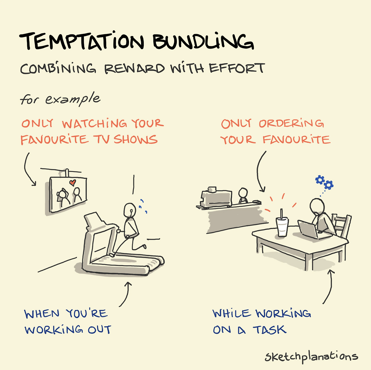 하지만 회사 업무처럼 집중력이 필요한 작업은 'Temptation Bundling'을 적용하기 어렵습니다. 업무 중 TV를 본다면, TV로 자꾸 시선이 빼앗겨 집중력이 현저히 떨어지겠죠. 이처럼 'Temptation Bundling’이 효과적이기 위해선 유혹과 목표 사이에 상호 간섭이 없어야 합니다.