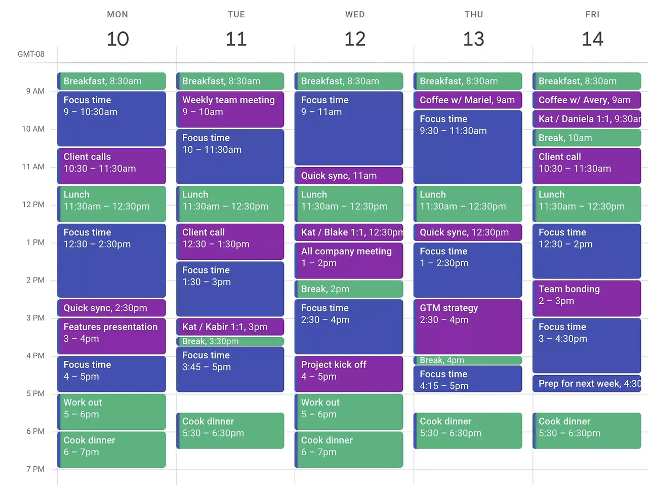 Time Blocking은 빌게이츠와 일론머스크도 사용하는 것으로 잘 알려진 시간 관리 방법입니다. 해야 할 일을 나열하고 우선순위를 설정하여, 캘린더에 하루의 일과를 Block 단위로 세분화하여 기록하는 방식입니다. 이는 업무뿐만 아니라 휴식과 자기 관리를 위한 시간 등 전체 일과를 기록하는 것으로, 효율적인 시간 활용과 함께 일과 생활의 균형을 유지하는 데에도 도움을 줍니다.