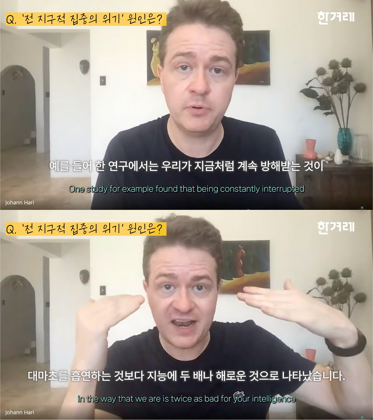 ⟪도둑맞은 집중력⟫의 저자 요한 하리는 한 인터뷰에서 멀티태스킹이 대마초를 흡연하는 것보다 지능에 두 배나 해롭다고 언급했습니다.
