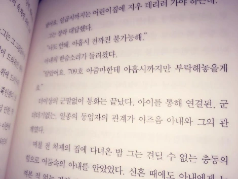 더 이상의 군말없이 통화는 끝났다. 아이를 통해 연결된, 군더더기 없는, 일종의 동업자의 관계가 이즈음 아내와 그의 관계였다