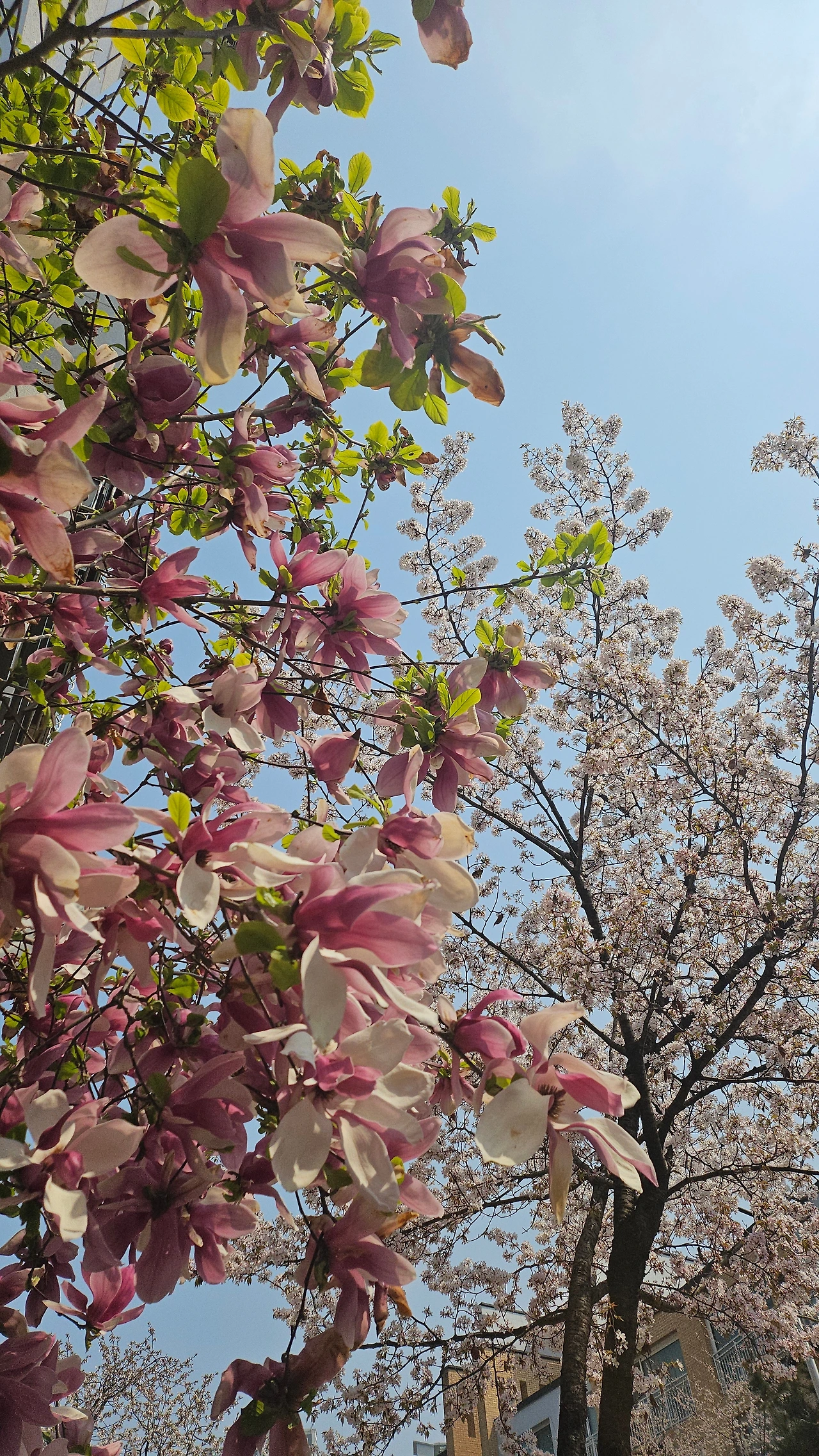 어느 건물 주인이 심은 짙은 분홍 물든 목련과 봄의 상징 벚꽃들. 이 시기엔 다정히 봄은 손에 잡히는데 사람 마음은 멀기만 하다던 이야기를 했다. 지금은 그 조차도 지난 노래가 되었다.