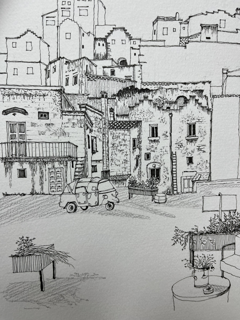 여행자에게는 중요한 일인데, 마테라에서 화장실을 찾는 일은 어렵지 않은 것 같다. 문을 연 식당이나 카페에 가서 화장실을 좀 써도 되겠냐는 말에 흔쾌히 사용을 허락해 준다. ‘북부의 깍쟁이들과는 다르구나’하는 느낌을 받았다. 화장실만 사용하는 것이 미안해서 커피를 한 잔 달라고 했더니, 브레이크 타임이라 커피를 서빙하지 못한다며 몹시 미안해한다. 기왕 신세를 지는 김에 야외의자에 앉아 쉬면서 전면의 풍경을 한참을 바라보았다.