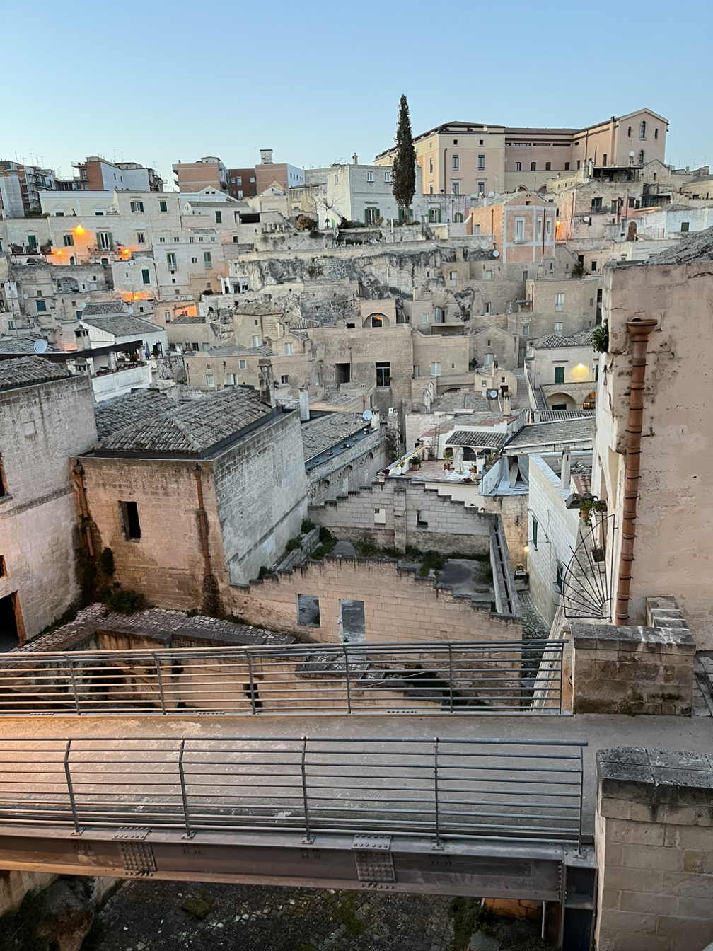 이렇게 환골탈태한 마테라는 이제 세계곳곳에서 관광객을 끌어모으고 있다. 마테라는 신시가지와 구시가지인 사씨(Sassi)로 구분된다. 동굴호텔을 경험하고 싶다면 당연히 사씨로 가야 한다. 다만 차량을 가지고 접근하기 어려우므로 가급적이면 바퀴 달린 여행가방보다는 배낭을 추천한다. 동굴호텔에서의 하룻밤이 매력적이긴 하지만 공조설비가 제대로 작동하지 않을 경우 습한 느낌으로 불쾌한 기분이 들 수 있다. 이곳을 여행한 거의 모든 여행자가 동굴호텔 체험을 추천하고 있으니 한 번 경험해 보는 것도 좋겠지만, 나는 신시가지의 일반적인 호텔을 선호한다.(가격이 저렴하고 쾌적하다)