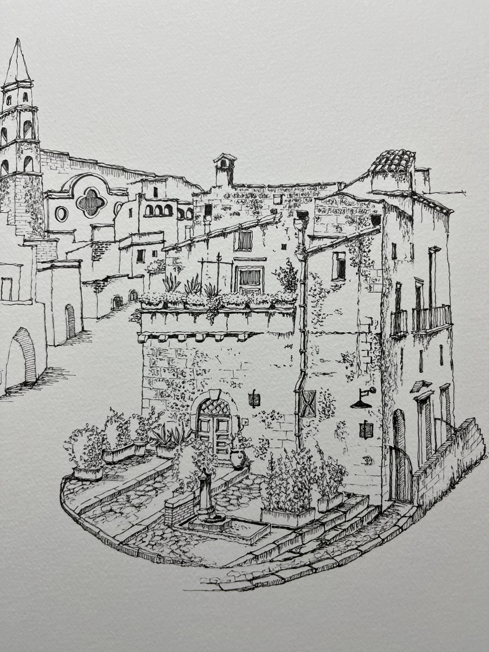 이번에 가려고 하는 곳은 ‘마테라’의 골목길이다. 글로 독자를 유입시킬 자신이 없으므로 그림도 한 장 그렸다. 엄청 공을 들였다. 게다가 ‘분노조절장애’에 이만한 ‘약’이 없다.