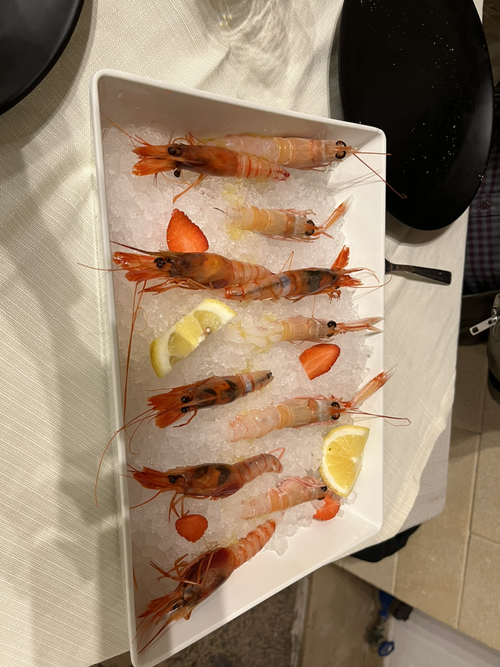 95라는 식당을 “몰또 프레스코”라면서 추천해 주었다. ‘매우 신선’하다는 말에 ‘재료가 무척 신선한가 보군’이라고 짐작을 했다. 가까운 곳이라서 배낭만 내려놓고 바로 식당으로 가니 문이 잠겨있다. 조금 더 기다려보다가 이 무슨 경우인가 싶어서 전화를 하니 안쪽에서 벨소리가 울린다. ‘아니, 안에 있으면서 문을 왜 안 열어?’. 과연 이곳이 추천을 할 만한 곳인가 의심스럽기는 하지만 어쨌든 친구의 추천이라니 믿어보기로 했다. 뭐 알 수 없는 메뉴이다. 카르파쵸 어쩌구하는 단어가 보이길래, 육회 같은 음식인가 싶어 시켰더니 ‘생새우’을 가져다준다.