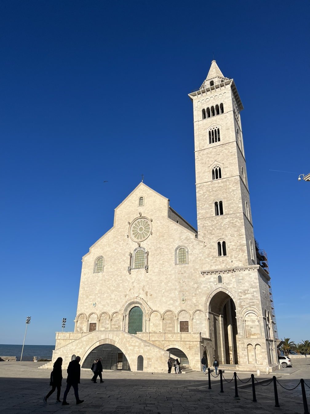 트라니는 그냥 작은 어촌 마을이다. 포구에는 작은 어선들이 가득하다. 포구를 둘러싼 성벽은 나지막하지만 단단해 보인다. 포구의 한쪽 끝에 성당이 보인다. 특이하다. 보통의 경우 역사지구의 중심에 성당과 광장이 있는데 이곳은 성당이 바다와 접해 있다. 중세시대 지중해를 배회하던 이슬람 해적들이 이곳을 가만두었을 것 같지는 않은데, 어떤 이유로 이곳에 성당을 만들었을까. 이슬람 해적으로부터 자유로워진 시대 이후에 만들어진 성당일까. 포구에서부터 작은 골목을 지나 만난 성당의 파사드는 무척이나 단아한 모습이다. 위압적이지 않은 크기와 은은한 옅은 갈색의 벽이 보는 이를 편안하게 해주는 느낌이었다. 이런 형태의 건물을 로마네스크 양식이라고 부르던가. 절제된 선과 화려하지 않은 파사드(성당의 전면부)가 아주 마음에 들었다.