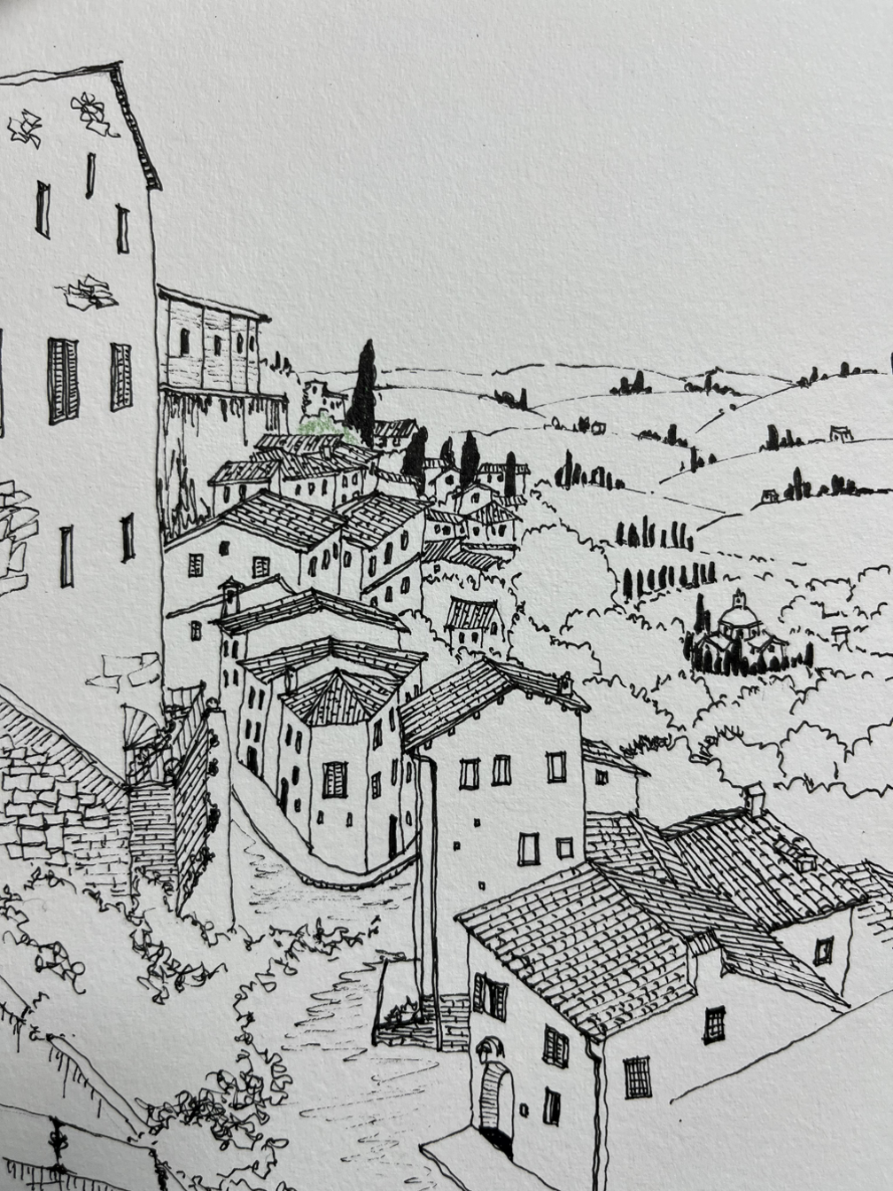 벨베데레(전망대)에 가서 주변 풍경을 둘러보는 것도 좋았다. 이게 내가 걸어온 길이라고 의심이 들 정도로 아주 근사했다. 나중에 지도를 확인해 보니 다른 방향이더군. 어쩐지. 끝없이 펼쳐진 초록의 언덕과 포도밭과 작은 마을과 길들이 한참을 쳐다보게 만든다.