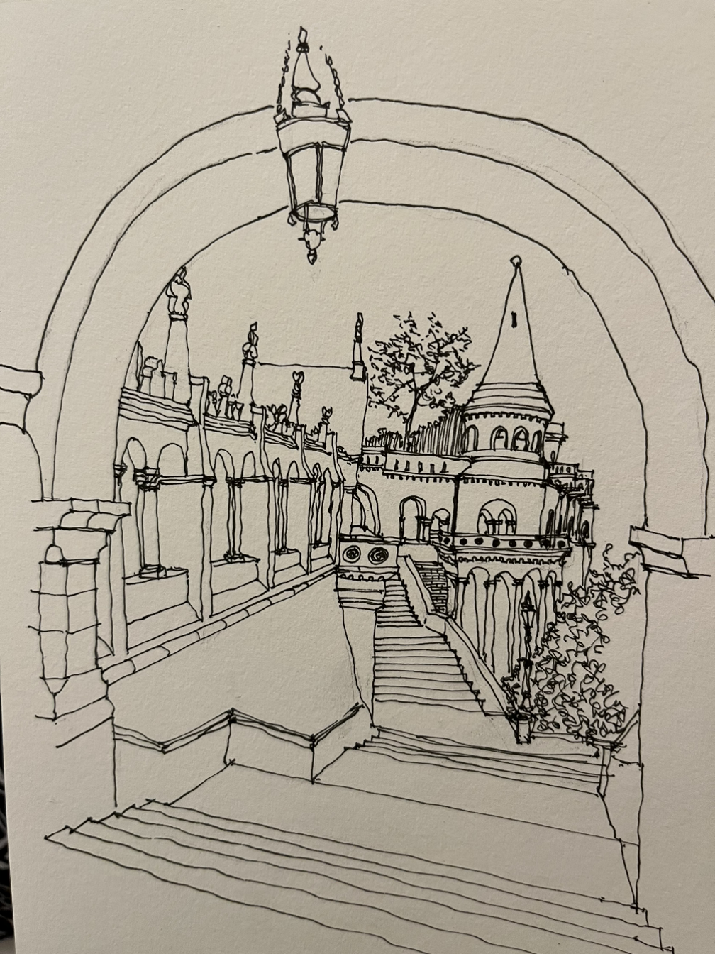 어부의 요새에서는 신자들이 모여 행사를 하고 있다. 지마음 말로는 여리고성을 일곱 바퀴 도는 행사를 하고 있는 것 같다고 한다. 찬송과 기도를 끝내고 돌기 시작한다. 우리는 노을이 잘 보일만한 카페에 자리를 잡고 있었는데, 노을도 그다지 인상적이지 않고 추워도 너무 춥다. 유월날씨가 이러기냐.