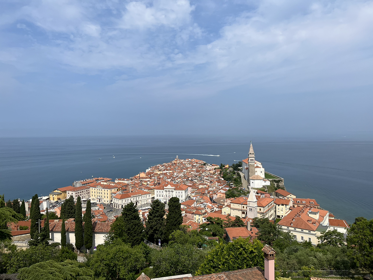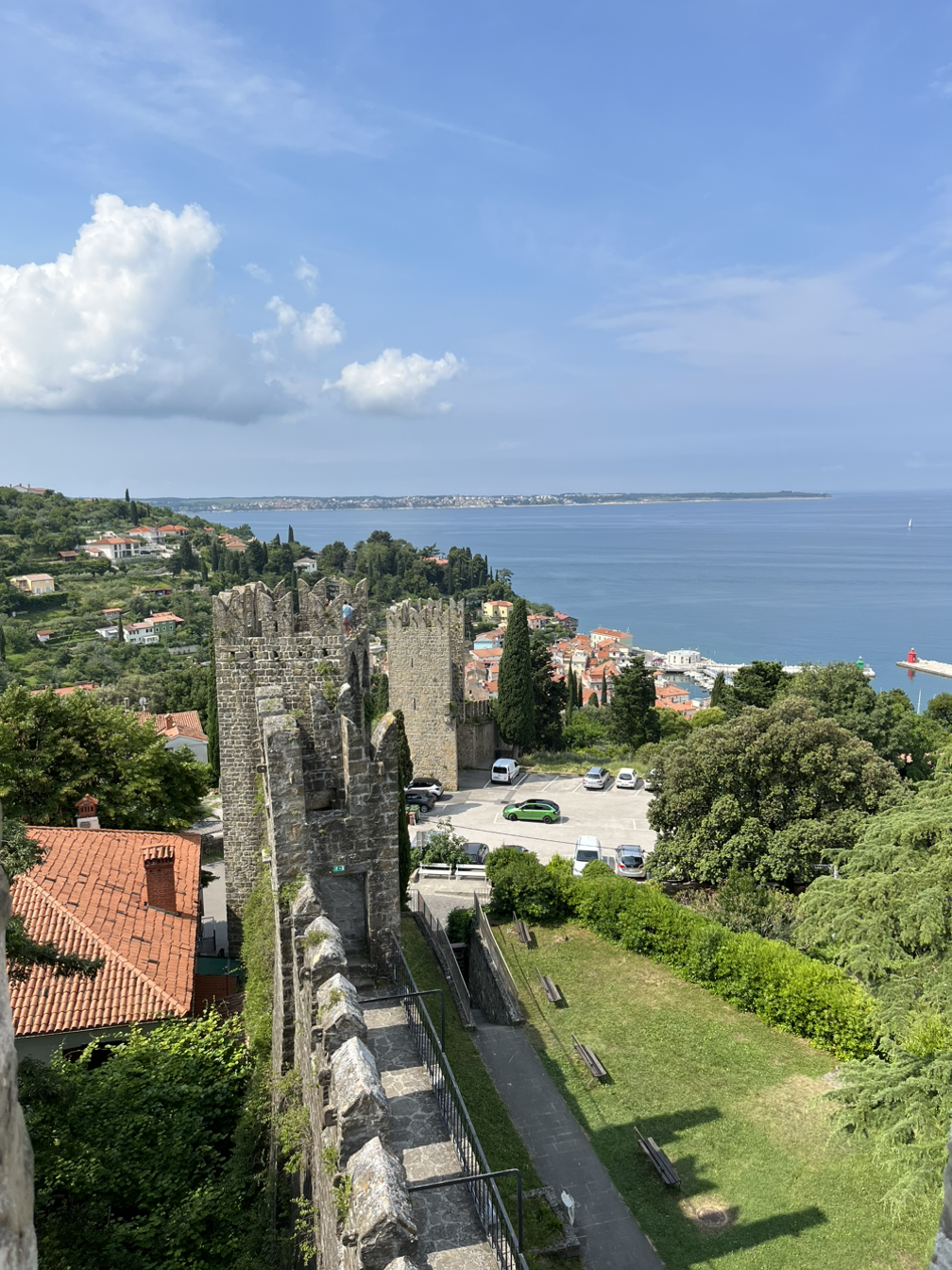피란 외곽의 주차건물에 일단 주차를 하고 성벽에 올라 전경을 찍은 다음, 바닷가 마을의 광장을 빠르게 다녀오는 것으로 ‘일단’ 계획을 세웠다. 성벽까지는 멋진 광경을 볼 수 있는 곳이니 모두 같이 올라갔다. 성벽 꼭대기에서 내려다보는 피란의 풍경은 역시 감탄사를 나올 정도로 아름답지만, 성벽 위에는 강렬한 햇빛을 피할 곳이 없다. 오늘따라 화장도 하지 않은 지마음. 이날 생긴 햇빛알레르기로 남은 여행 내내 콧잔등에 뾰루지를 달고 다녀야 했다. 지금사진이 이리저리 다니면서 사진을 찍고 있는 동안, 우리는 내려가서 나무그늘로 ‘피란’.