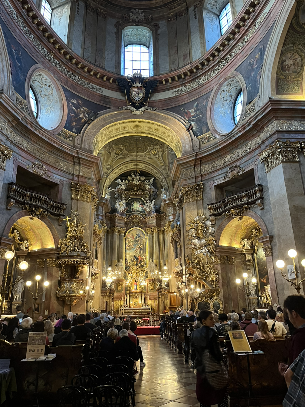 트램으로 몇 정거장만 가면 오페라하우스이다. 호프부르크 왕궁 구경도 하고 사진도 찍어주고 구 시가지를 이리저리 걷다가 음악회가 열리는 성당 앞을 지나가게 되었다. 드레스코드도 필요 없는 현악 4중주의 공연이었다. 우리가 언제 다시 비엔나에 와서 음악회를 가겠나 싶었다. 이상하게 독일어권 사람들은 아직도 현금거래를 좋아하고 있다는 느낌이다. 고사우의 숙소에서도 이곳에서도 현금으로 거래를 한다. <비발디의 사계> 중 <봄>을 시작으로 익숙한 레퍼토리어서 다행이다. 중간에 처음 들어보는 클래식도 있었지만 대체로 무난했던 것 같다. 지금사진과 지마음도 아주 만족스러운 표정이다.