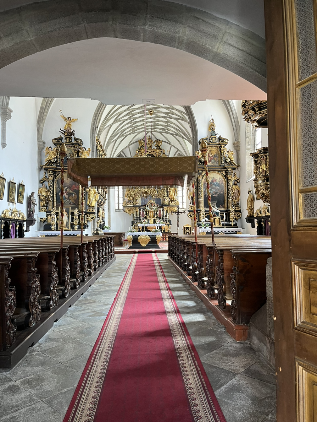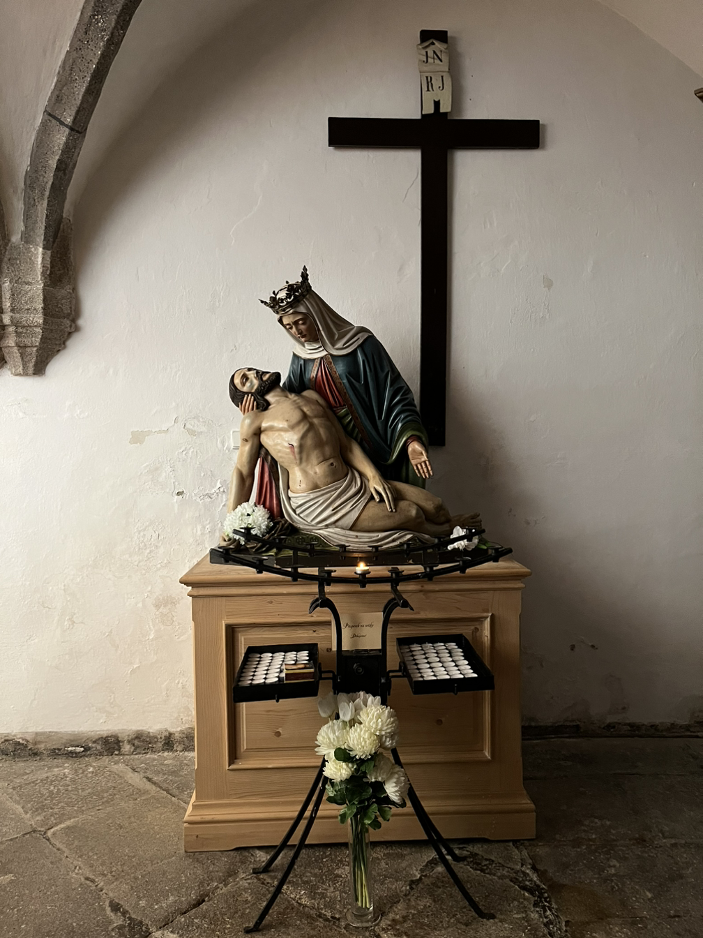 광장과 성당 그리고 단단해 보이는 성이 이곳의 볼거리이다. 성당문이 잠겨 있어서 아쉬움에 지마음이 철창문에 한참을 매달려 있다. 이제 그만 가려고 하는 순간 성당을 관리하고 계신 분이 내려오셔서 문을 열어주셨다. CCTV를 보다가 지마음이 철창문에 매미처럼 매달려 있는 것을 봤다고 하신다. 그리하여 들어간 성당 내부는 경건한 분위기이다. 작은 마을이라도 이렇게 관리를 잘 하고 있는 성당이라니. 이곳 사람들이 어떻게 성당을 생각하고 있는지 알 것 같다. 지마음은 오늘도 초를 켜고 기도를 드린다.
