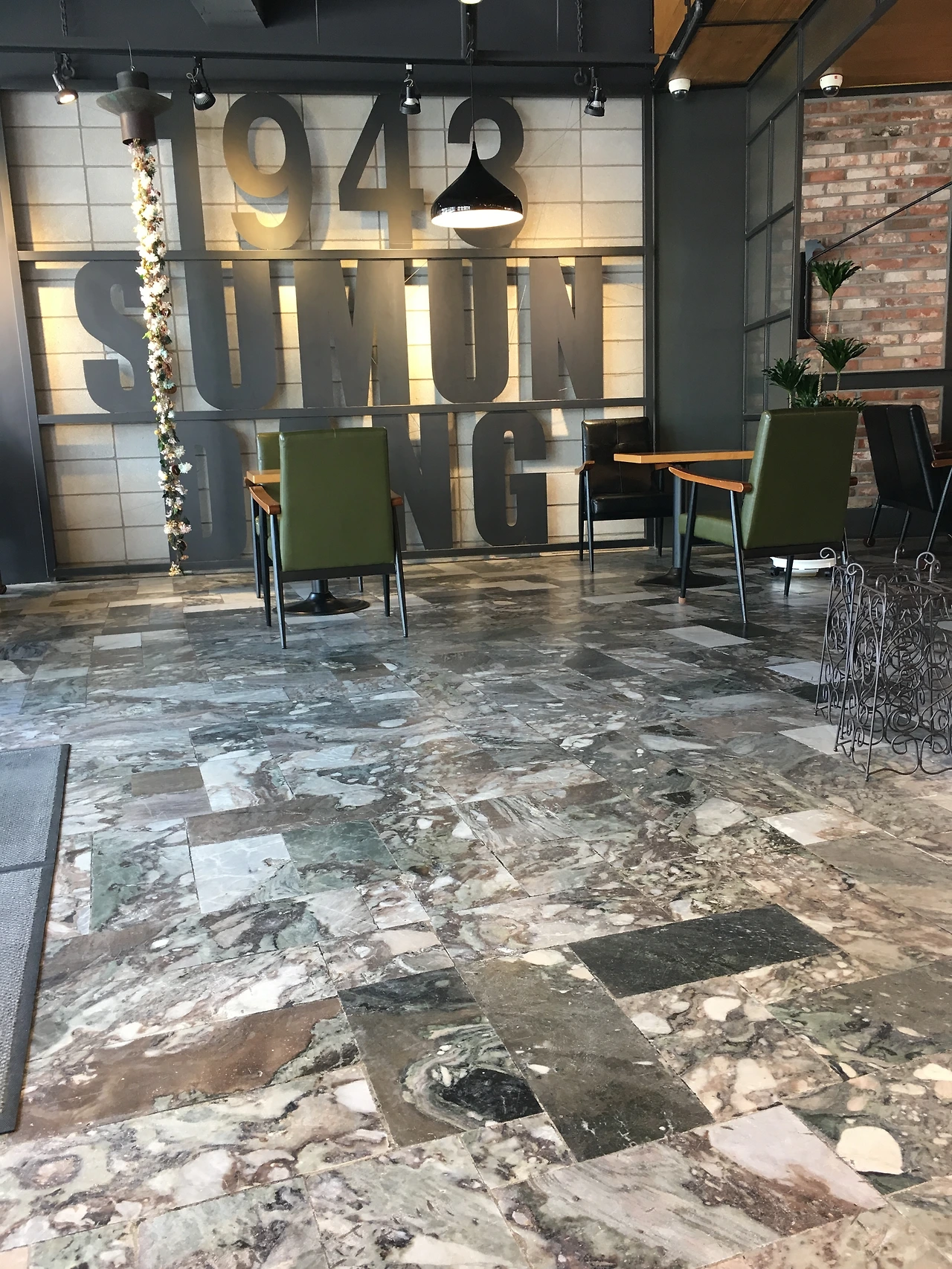 여기에 한 가지 더 변수가 있다. 수문당이라는 곳이 있다. 1943년(셋 중 가장 오래되었다!) 개업을 한 이래 한 자리를 지켜온 곳이다. 심지어 바닥에 깔린 대리석은 아직도 그대로 살려두고 사용하고 있다. 개업 당시에는 빵을 만들었지만 지금은 빵을 만드는 경쟁에서 한 발자국 비껴 나 있다. 스콘과 시폰 케이크만 만들고 있으며 간단하게 커피와 함께 즐길 수 있다. 하지만 이곳에 가서 커피만 먹고 온다면 실수를 하는 것이다. 팥 셰이크를 꼭 즐겨보시길 권한다. 목포야말로 퐅죽과 퐅칼국수가 유명한 곳이 아닌가 말이다.