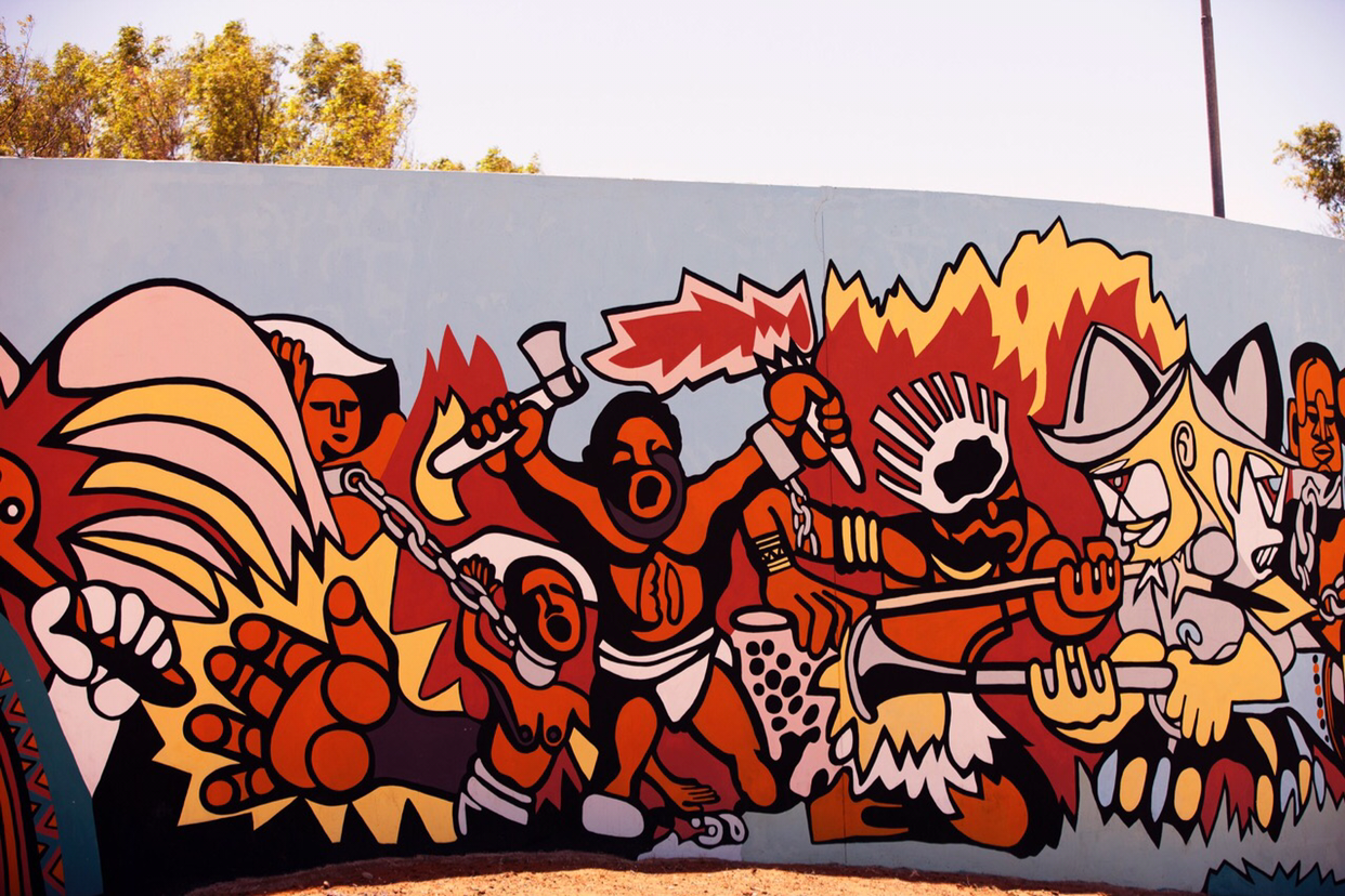 여권 찾아 호텔로 돌아갈 때 멀리서 벽화를 또 찍었다. 가까이 가서 찍지는 못하고 이번에는 새가슴 쪼매 쫄리면서 벽화를 찍었다.
