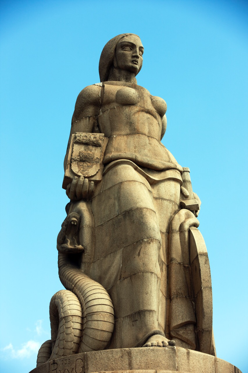 무슨 동상인지는 몰라도 혁명과업과 관련있는 부조가 양쪽으로 새겨져 있다. 서 있는 처자도 눈매가 무서워 보통내기가 아닌 것 같다.