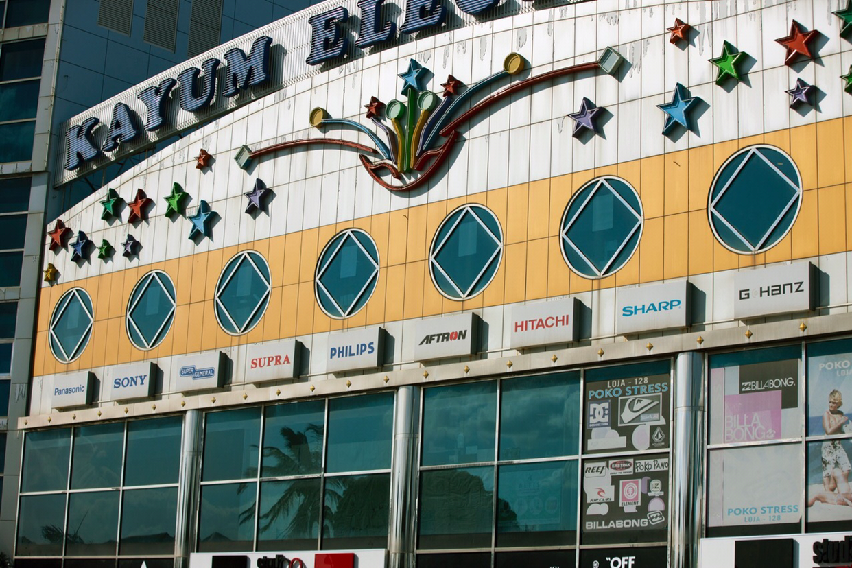 페리보트 타는 길에 있는 대형 쇼핑센터로 입구에 경비가 기관총을 들고 지키고 있다.