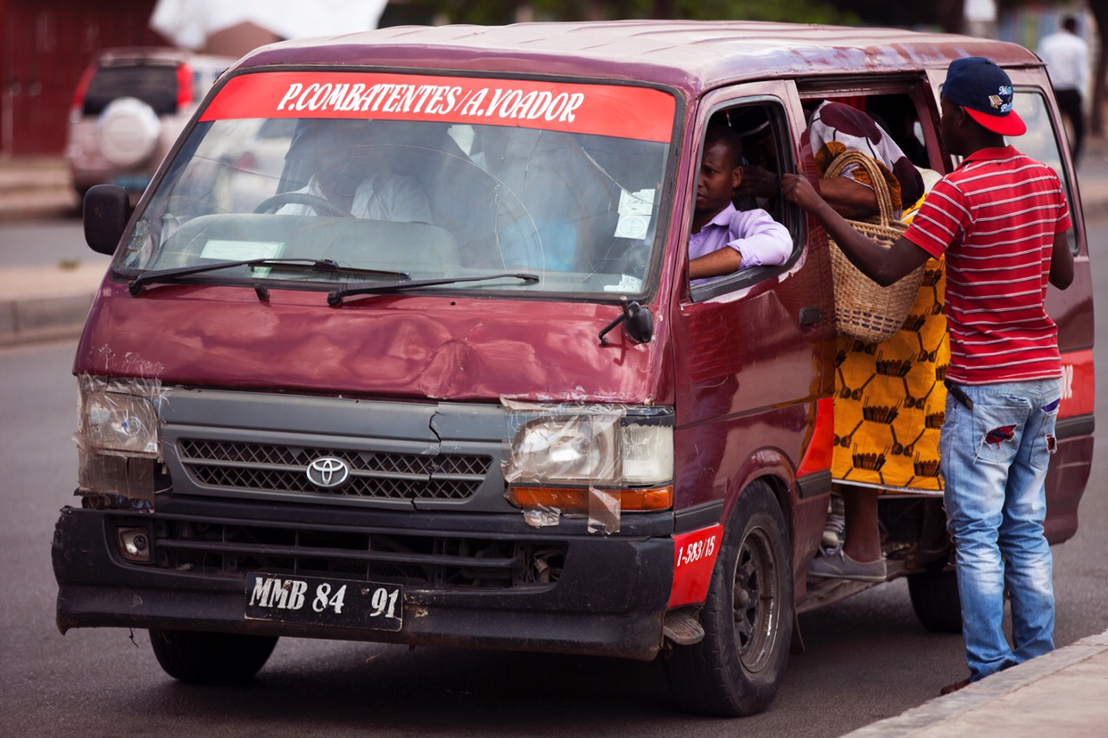 아침에 10시에 오라고 했는데 11시에 갔다. 짐은 호텔에 있어 몸이 가벼우니 배낭 여행자답게 버스를 찾아보았다. 힘이 드는게 영어가 전혀 통하지 않고 순전히 포르투칼어로 나오니까 정보를 캐낼 수가 없다. 포르투칼어와 스페니쉬가 약 50% 정도는 상호 소통이 된다고 한다. 그래도 작년 남미 배낭에서 터득한 짧은 스페니쉬를 구사해 봐도 신통찮다. "부스 빠라 에어로뽀르토, 아끼?" 그대로 말하면 "공항가는 버스, 여기?" 인데 "공항가는 버스 여기섭니까" 라고 그렇게 짧게 물어 보는건데 남미에서는 100% 통했는데 여기서는 안되는기 'bus'가 통하지 않는다. 이렇게 몇 번 물어면 그 중에 영어 쪼매하는 작자가 나와서 바로 가는 차는 없고 '쁠라사'에서 내려 갈아 타야한다고 한다. 호텔 앞에서 일단 '쁠라사' 가는 미니버스를 탔다. 여기는 아래 사진처럼 한국의 봉고차보다도 조금 작은 것 같다. 1회 요금은 8 MT로 미화 1불이 40MT 니까 미화 약 20센트다. 어제 저녁 이민국 직원이 태워주면서 기름값 달라고 해서 500MT 주었는데 이게 관광객에게 받는 협정 택시요금이다. 쁠라사에서 내려서 공항가는 버스알아보니 없다고 하는데 누군가가 저쪽으로 가면 있다고 하는 것 같아 열심히 걸어가도 버스 STOP이 안 보여 또 사람을 잡고 물어보니 저 코너만 돌면 공항이라 해서 아까 그 사람은 버스 정류소를 말한게 아니고 공항가는 길을 가르쳐 준것 같았다. 쁠라사에서 걸어서 10분이면 족하다. 그래서 어제 500MT로 공항에서 호텔로 왔는데 오늘은 8 MT로 호텔에서 공항으로 간 셈이다. 500 대 8 로 오늘은 내가 이겼다. 결국 가서 미화 98불 비자 수수료내고 30일 짜리 비자 도장받아 왔다. 아프리카에서는 제일 비싼 수수료이지만 남미에 비해서는 그래도 싼 편이다. 미국 여권으로 남미 들어 갈때 볼리비아, 아르헨티나, 브라질 요 세 나라만 받는데 각각 미화 150불씩 받는다. 그러나, 대한민국 여권은 전부 그대로 통과해 준다.