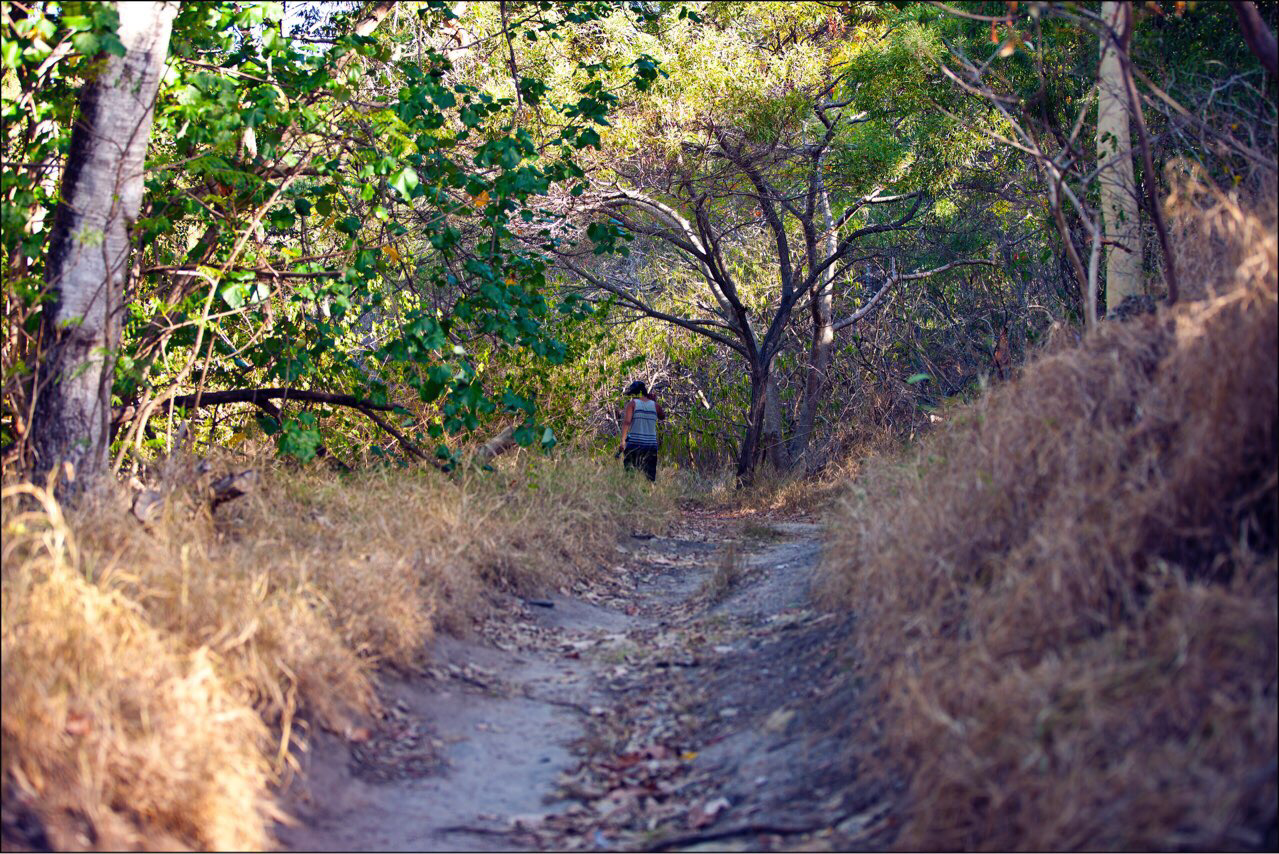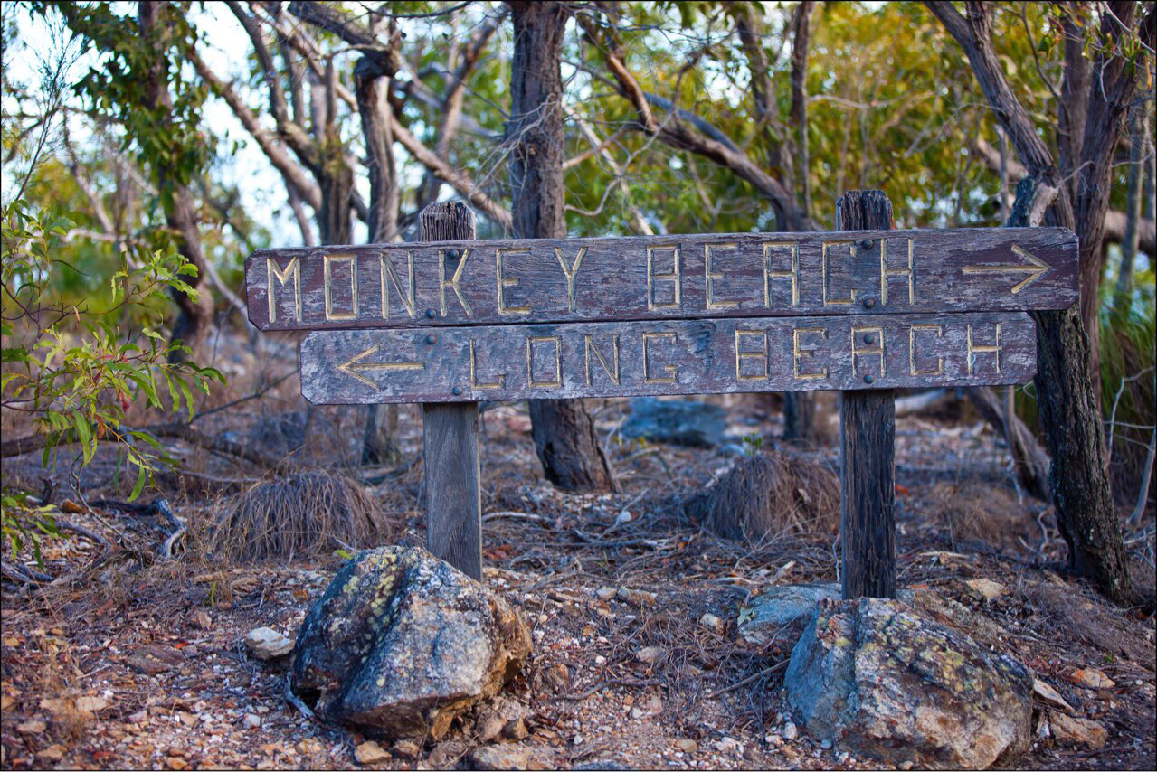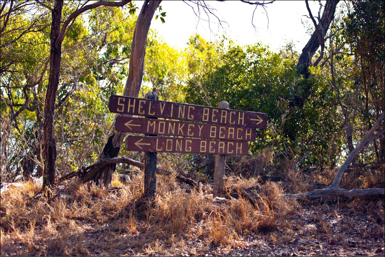 배낭과 짐을 아랫채에 있는 방에 두고 수영복으로 갈아 입고 카매라와 GOPRO만 가지고 섬 오른쪽 코너에 있는 산길로 트레킹했다. 그리 높은 산은 아니고 언덕 수준이지만 올라 가보니 길이 이리 저리로 얽혀있다. 산길 중간 중간 이정표가 세워져 있어 길 찾는 것은 쉬웠다. 보니까 비치가 섬 주위로 삥 둘러가며 널려있다. 일단 왼쪽으로 길을 잡아 Monkey나 Long비치로 가기로 하고……