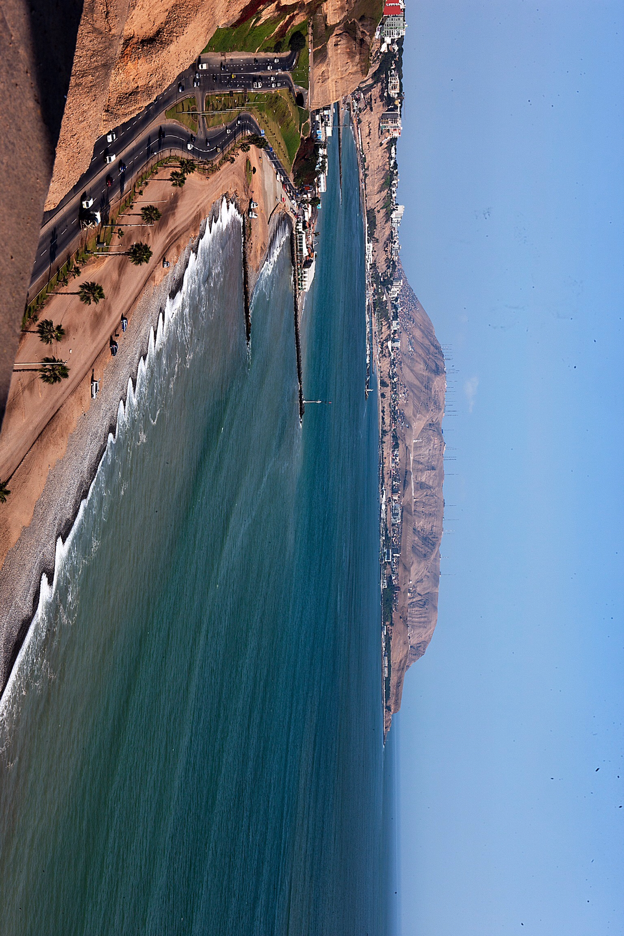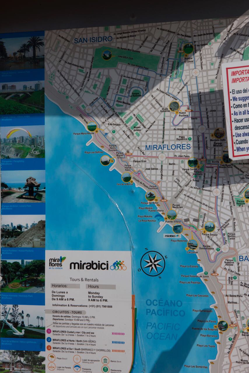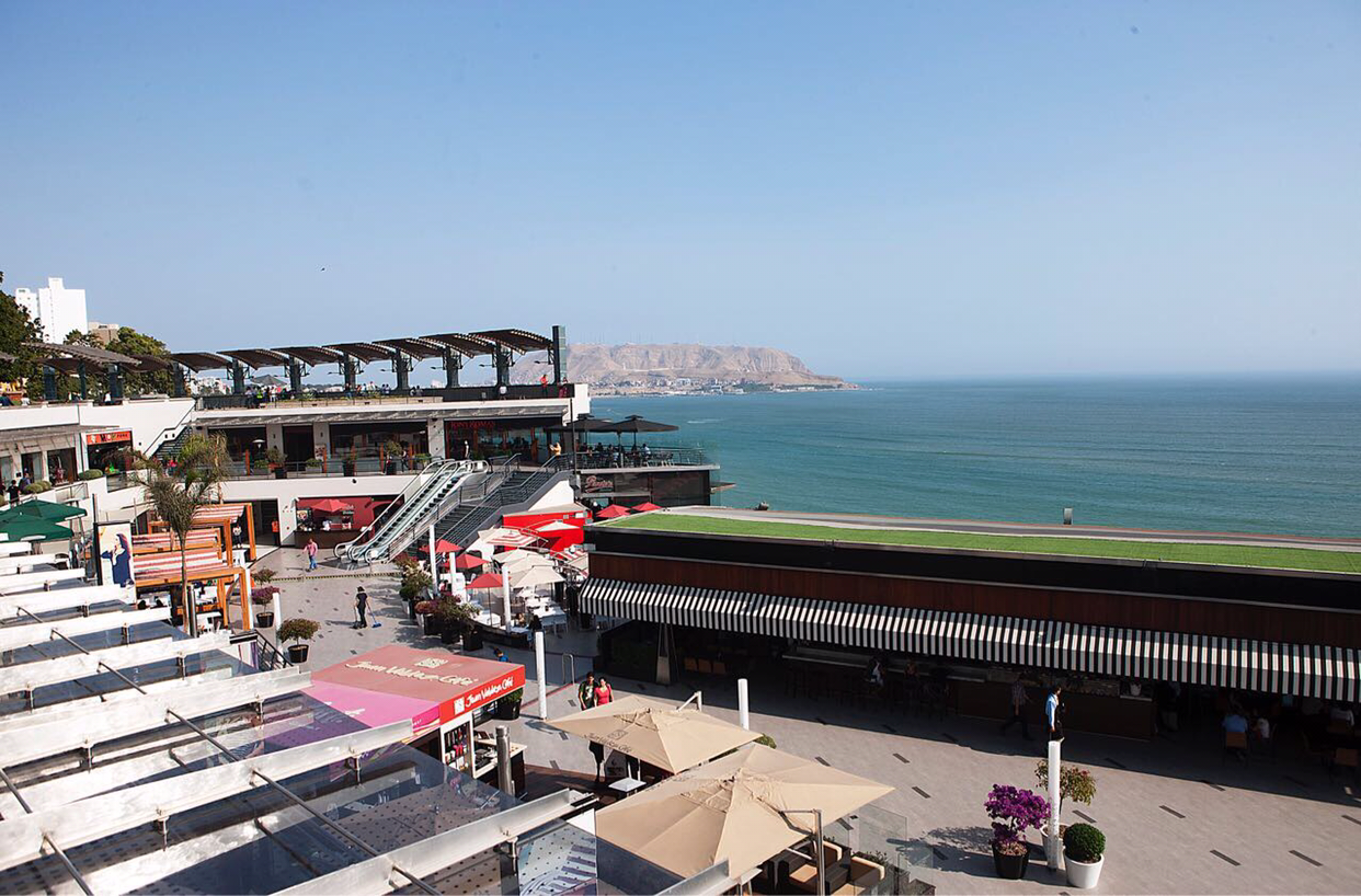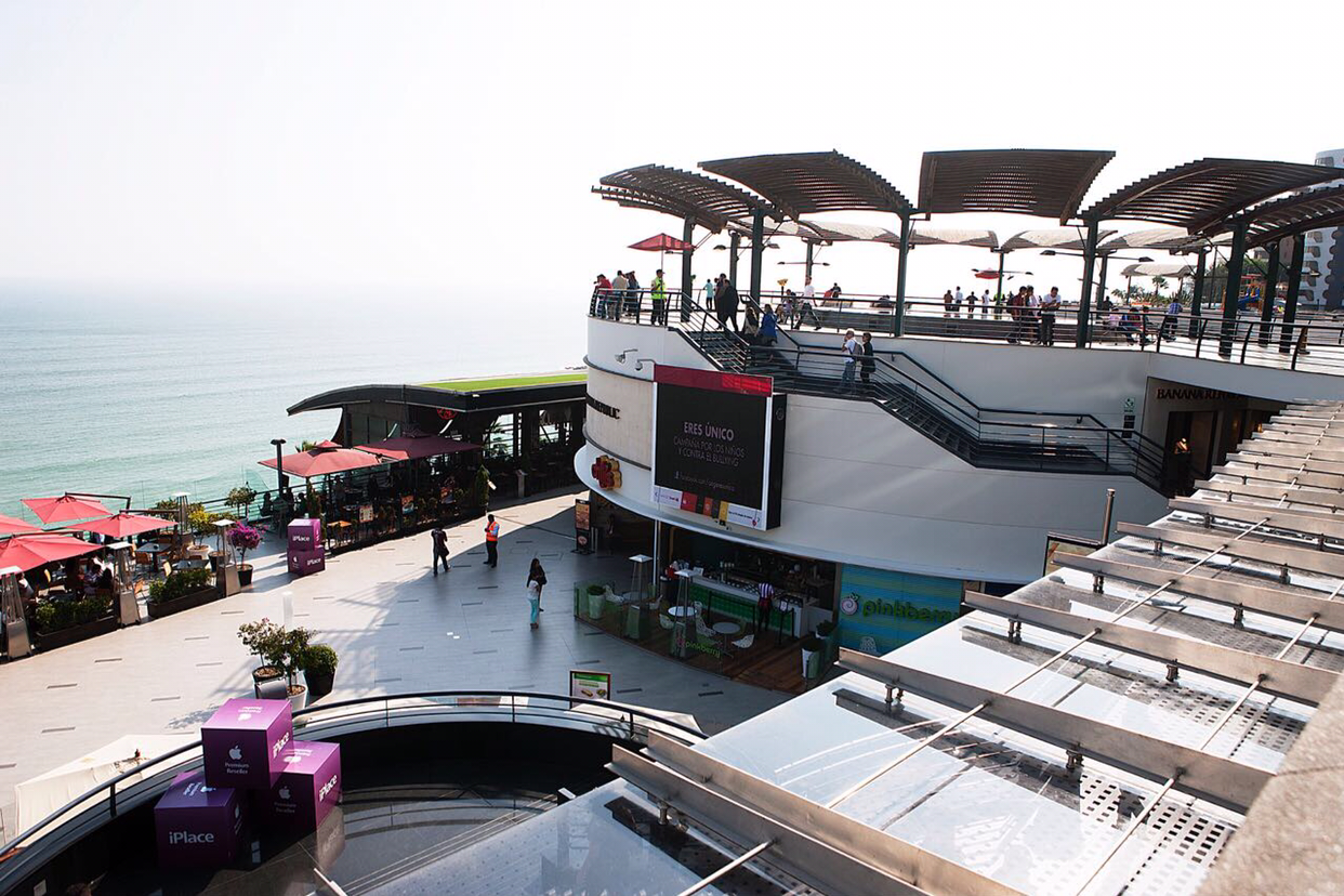 Larcomar는 2002년에 조성된 쇼핑센터로 미아플로레스 해안 절벽위에 폐루 민속품점, 12 개 스크린이 있는 극장, 까페, 고급 술집과 식당, 볼링장, 세계적인 브랜드가 총집합되어 있어 현지인은 물론 관광객까지 끌어 모으고 있다. 바로 해변가에 있는것이 아니고 해안 절벽위에 자리하고 있어 쇼핑센터로부터 태평양 바다를 조망할 수 있게 높은 곳에 위치해있다. 쇼핑센터에서 위로 통하는 계단으로 올라 가면 바다를 바라볼 수 있는 전망대가 있다. 아래 사진처럼 해안도로는 저 발밑에 있고 여기는 높은 절벽 위에 위치하기 때문에 바다경치가 시원하게 눈에 들어온다.