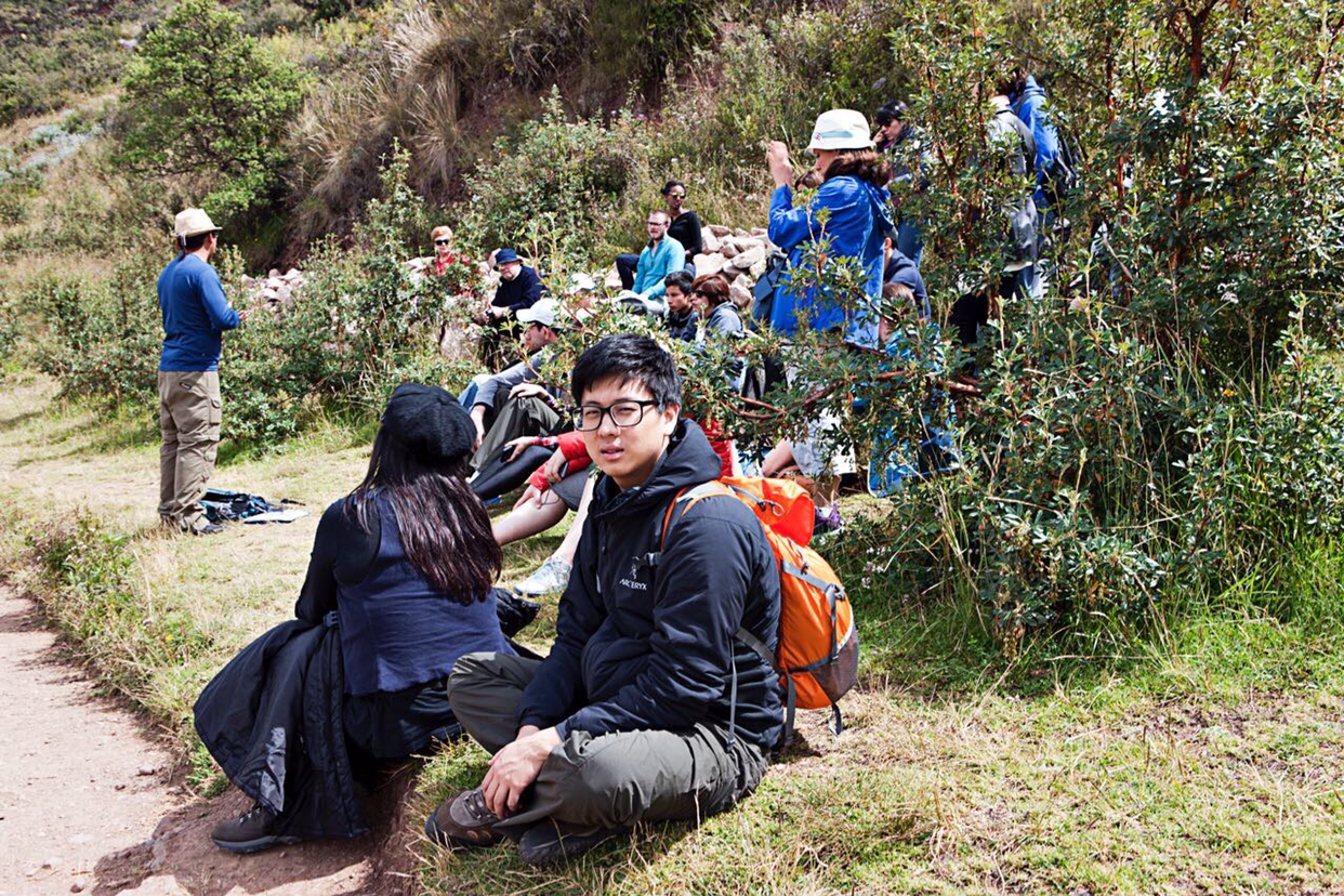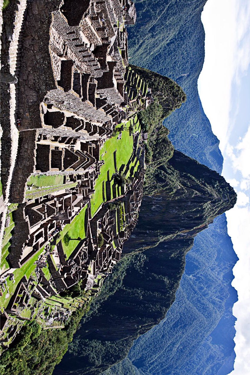 정면에서 바라보면 경사가 별로 없는 것 같지만 이렇게 측면에서 보면 경사가 약 45도다. 늙고 다리 힘없는 할배 할매는 못올라 간다. 이러한 돌계단이 약 300단이 있어 150미터를 45도 경사를 타고 오르게된다. 계단 폭도 좁기 때문에 올라 가는 줄 하나 내려오는 줄하나가 바로 마주치면 비좁다. 모두들 마추픽추 오르기전 전초훈련이라도 하듯이 열심히 오르고 있다.