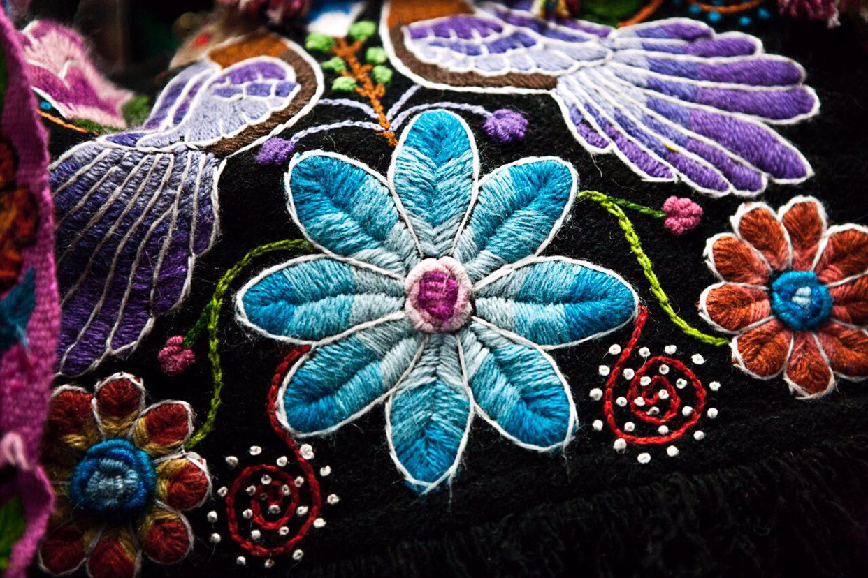 형형색깔의 실로 한뜸 한뜸 수놓은 제품