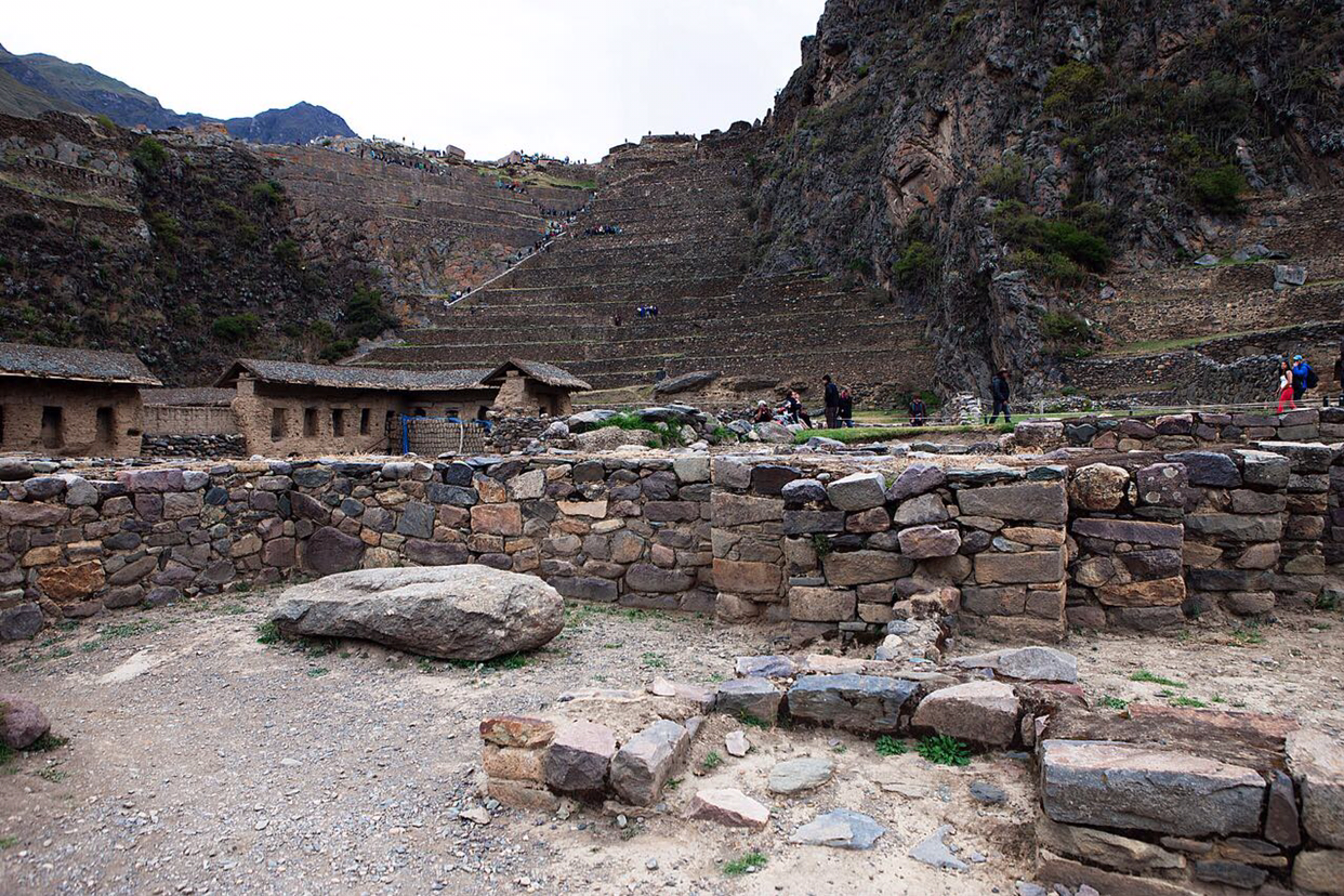 입장해서 바로 돌계단으로 올라 가지 않고 오른편으로 돌아 가면 위 사진처럼 옛 주거지 형태가 몇개 남아있다. 사진 오른편 중턱에 있는 네모난 건물터가 아까 정상에서 바라본 곡물창고터다. 이런 거대한 돌들을 맞은편 우루밤바강가의 채석장에서 운반해 온 것이라하는데 그 경사를 어떻게 끌어올렸지는 생각할수록 불가사의하다는 것이다.