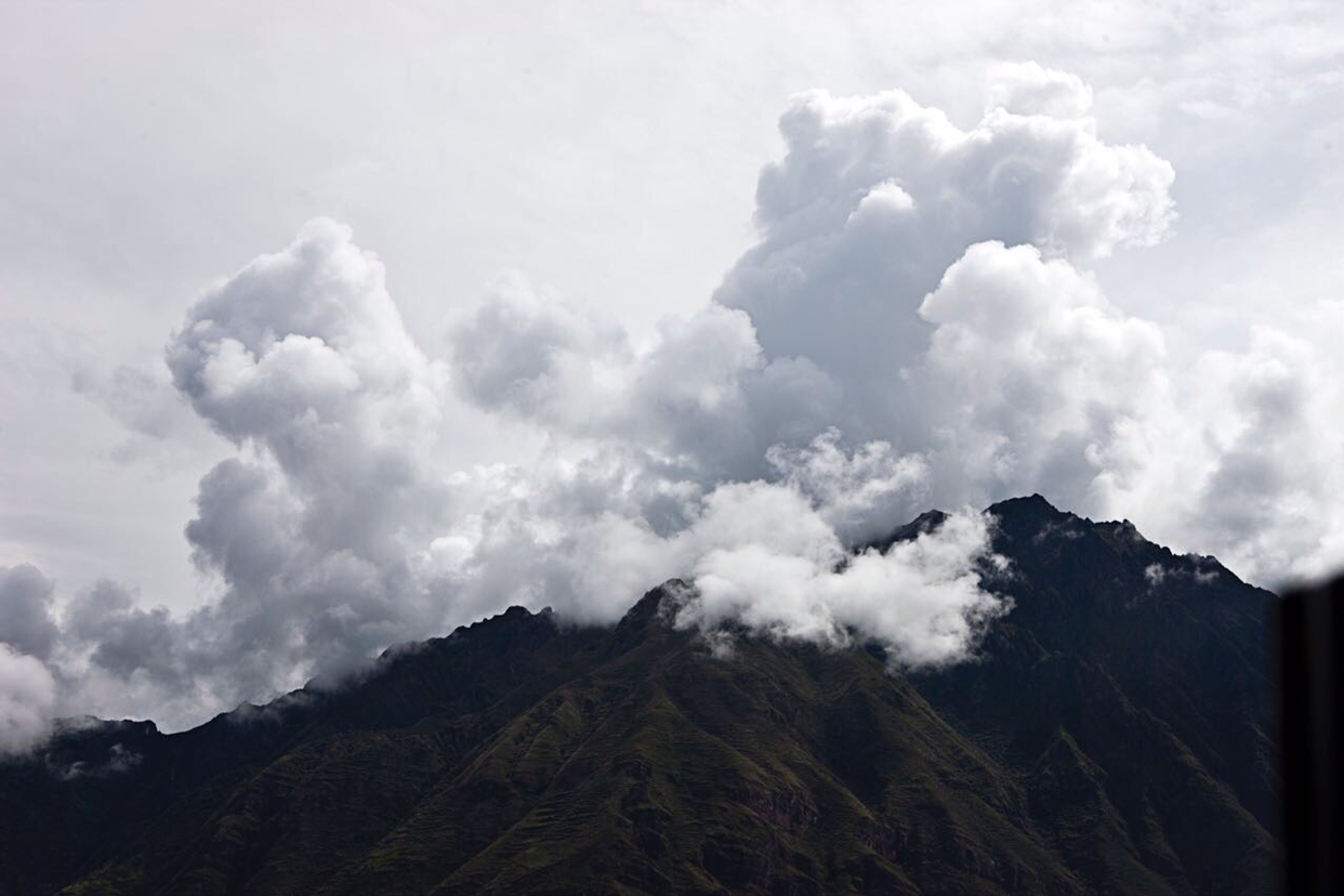 버스가 점점 험악한 길로 올라 가기 시작한다. 그러자, 눈에 들어 오는 산세도 달라지기 시작한다. 산들이 높아서 그런지 구름도 넘지 못하고 추풍령 고개의 구름처럼 걸려있다. 비포장도로로 차가 두 대 겨우 지나길 정도의 폭으로 계곡을 내려갈 때는 좀 무섭기도 하다. 브레이크가 고장나면 그대로 낭떠러지로 굴러 떨어질 것 같았다. 전망이 탁 트인 산중턱에서 버스가 잠시 정차하였다. 전망이 좋아 사진찍어라고 쉬어 가는 곳이란다. 중앙에 산골짝으로 흘러가는 강이 보이는데 우루밤바강이다. 저 강을 따라 내려가면 마추피추를 만나게 된다고 한다. 그래서 성스러운 계곡을 다른 이름으로 우루밤바 계곡으로 불리기도 한다.