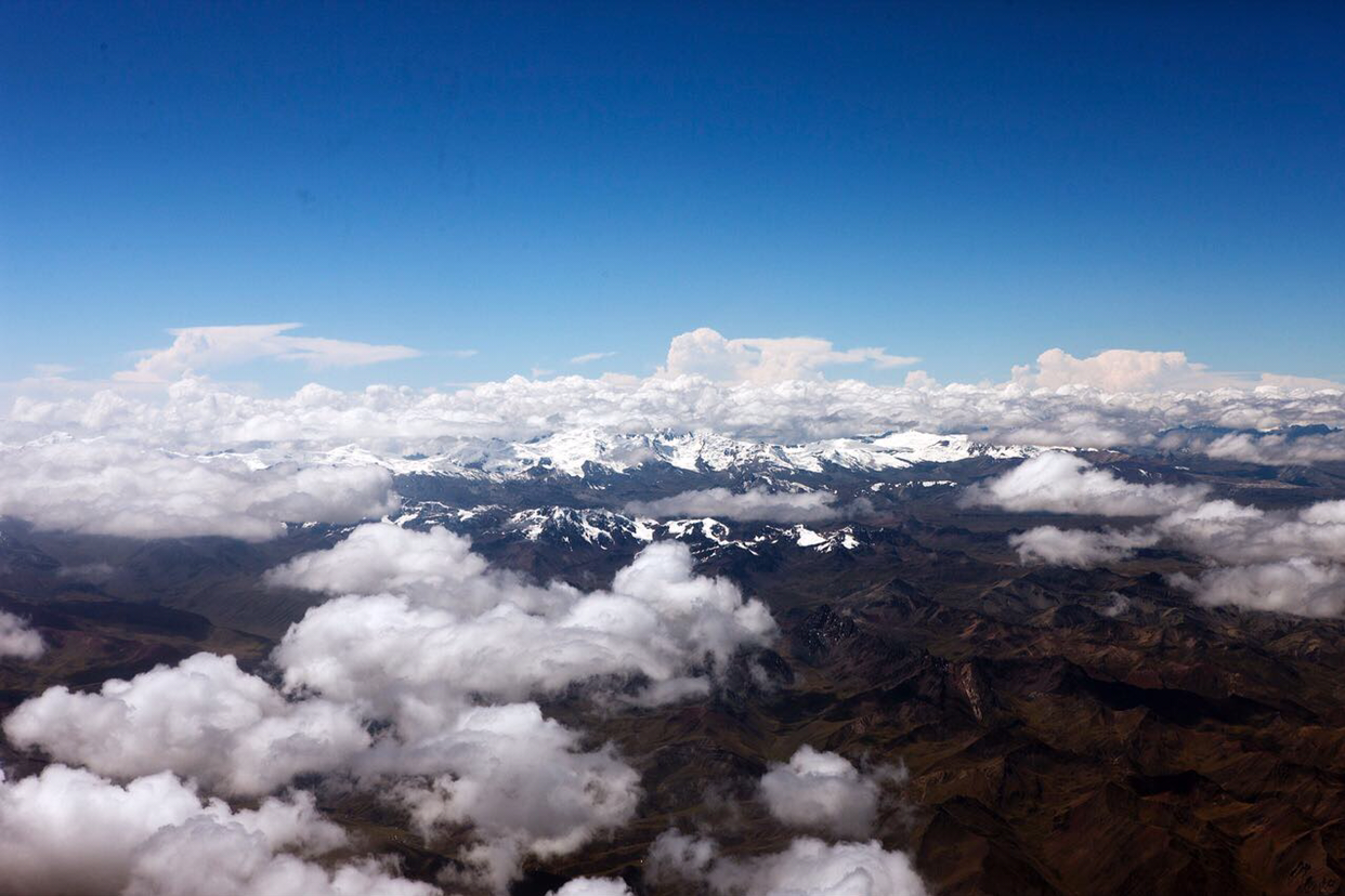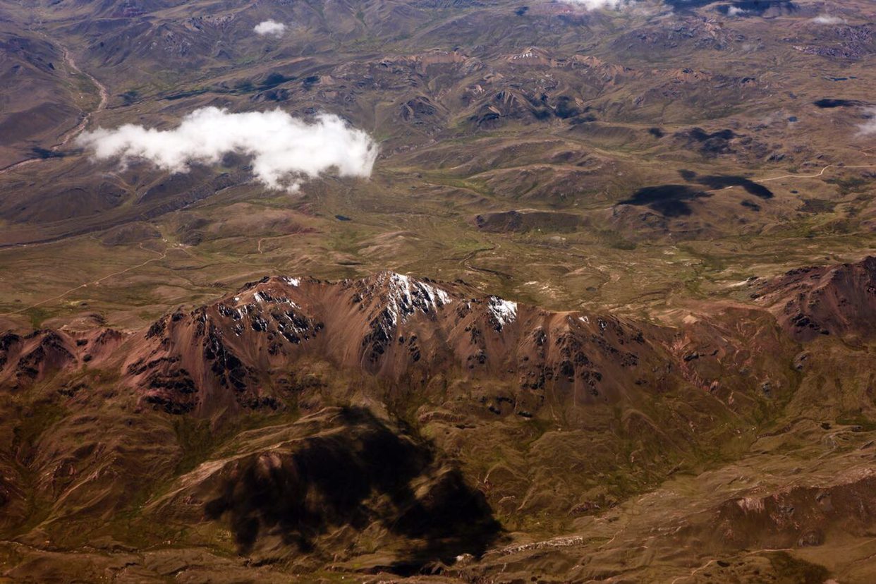 뱅기에서 잡은 안데스산맥. 높은 곳은 만년설로 하얀 눈옷을 자랑하고 있다.